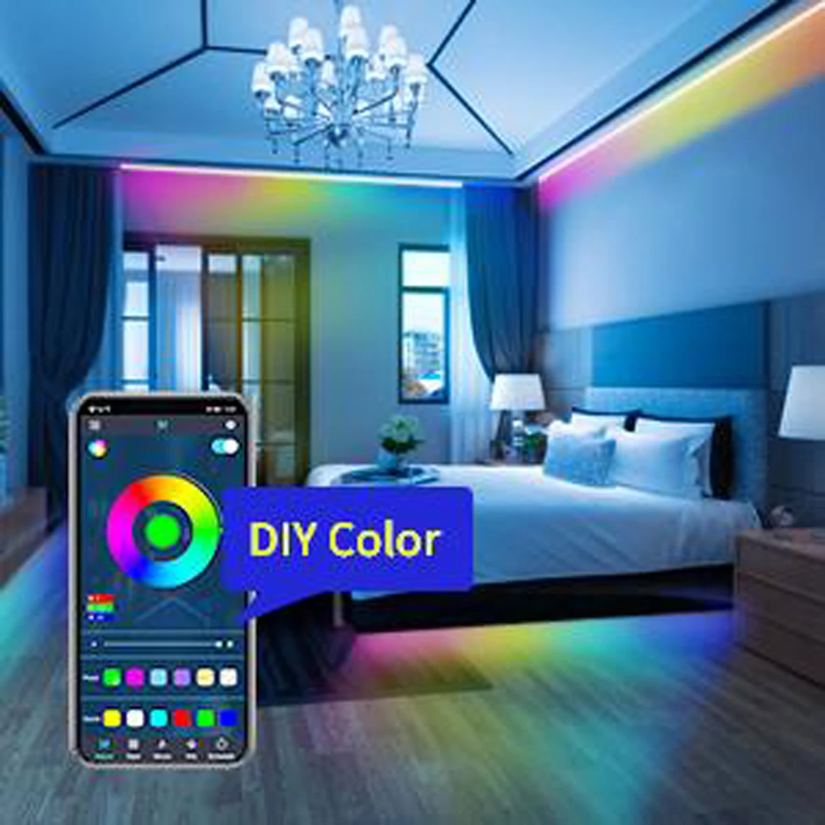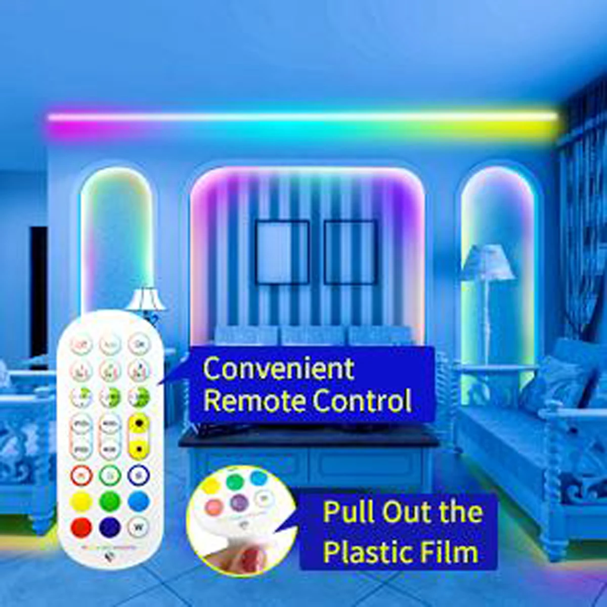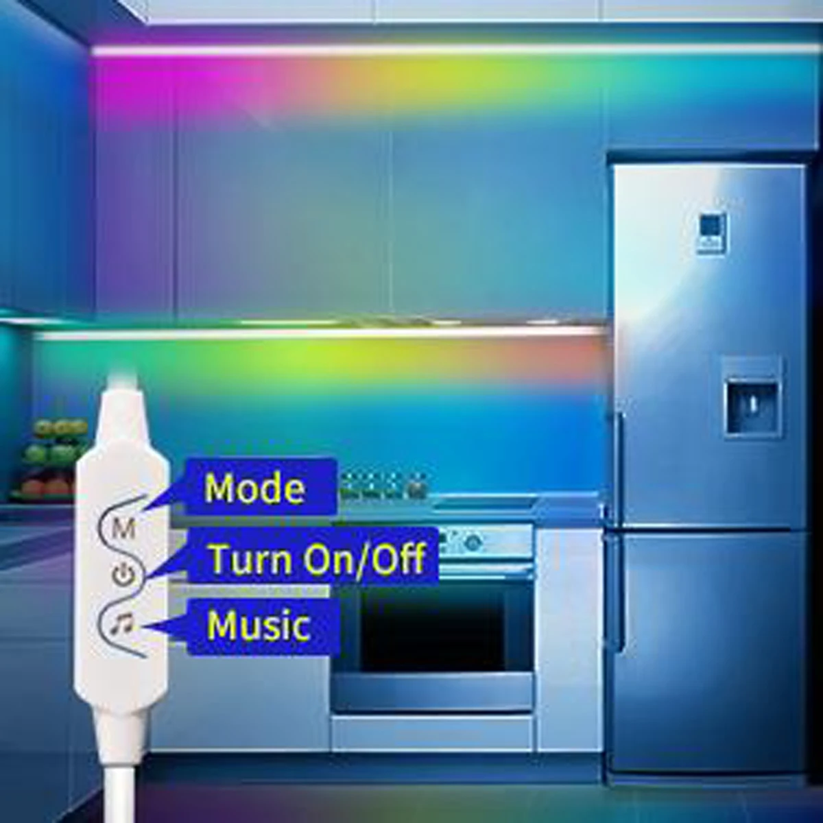 Три кнопки используются для изменения цвета, переключения и изменения режима, длительное нажатие кнопки переключения, чтобы выключить световую ленту. Встроенный микрофон, световая лента может танцевать с музыкой или другим голосом.