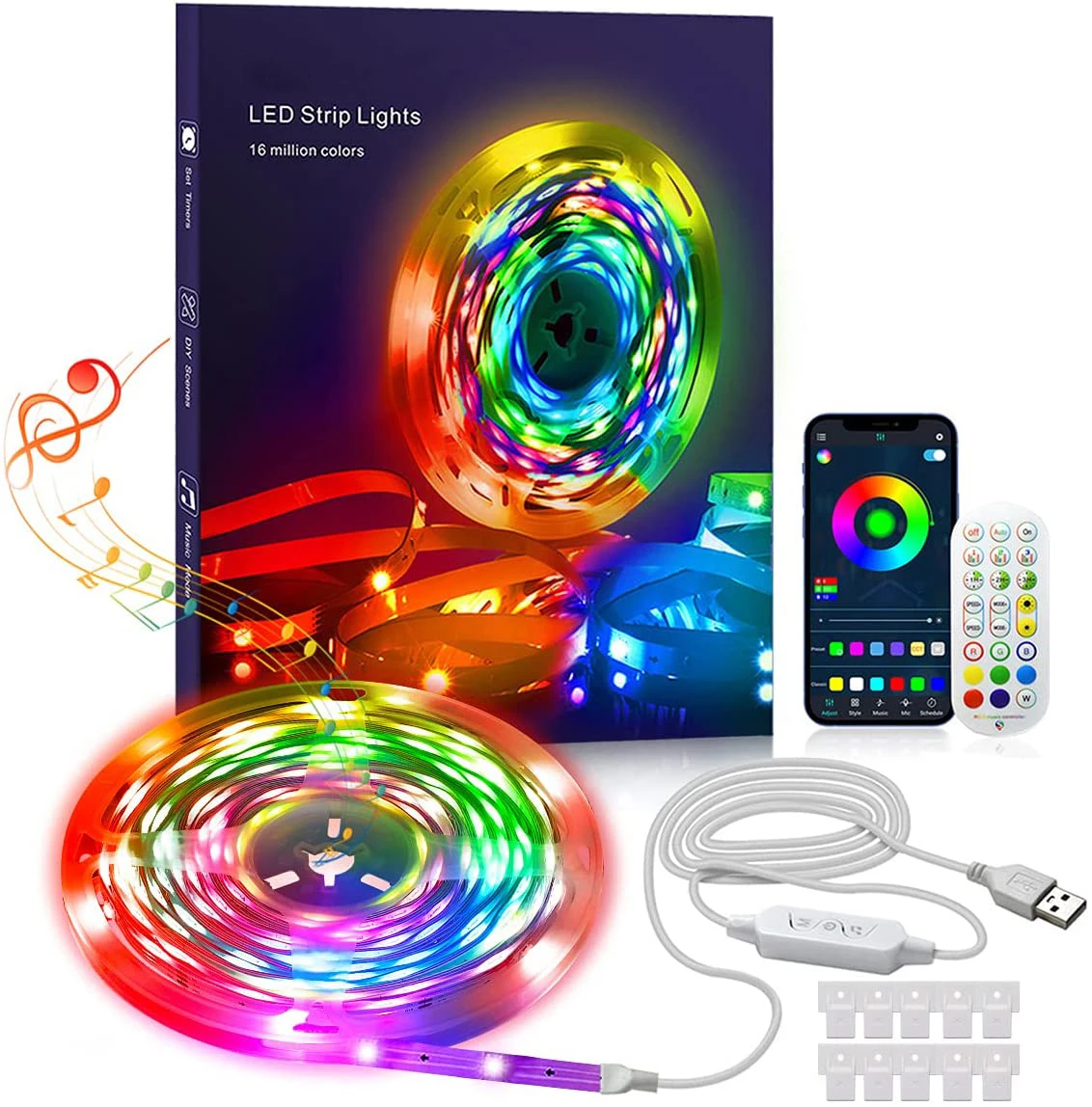 Светодиодная лента USB светодиодные фонари светодиодная подсветка лампа Светодиодная лента RGB 5050 LED украшение цвета меняется с помощью приложения Bluetooth пульт дистанционного управления