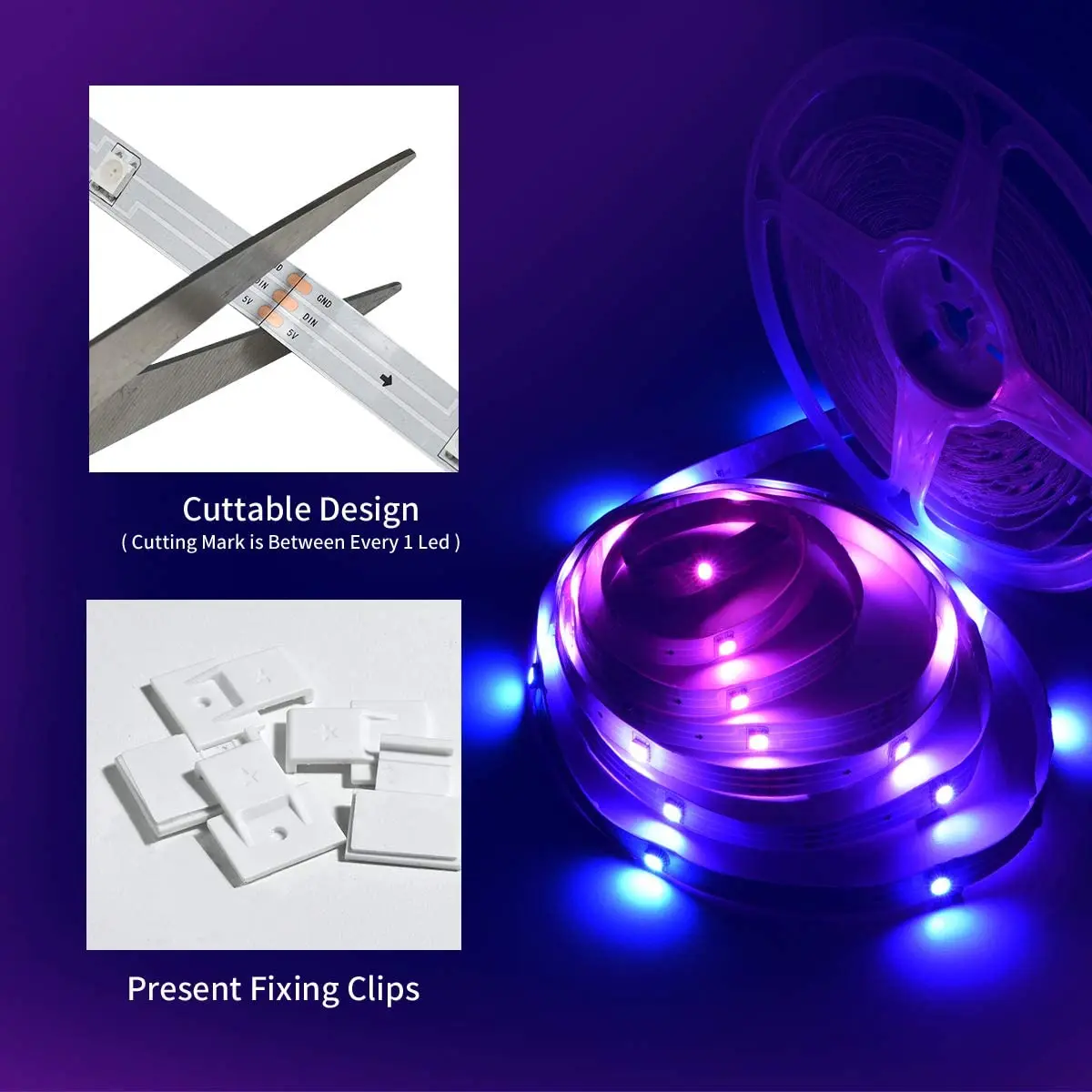 Простая установка-эти светодиодные лампы также можно установить за считанные секунды, просто снимите и приклейте, подключи и играй.Режущая конструкция-эта лента позволяет разрезать каждые светодиодный по режущим меткам, чтобы настроить длину светодиодных фонарей.Широкое применение-светильники, меняющие цвет, подходят для гостиной, спальни, кухни, лестницы, шкафа, автомобиля, магазинов и украшения всех помещений для вечеринок или других мероприятий на открытом воздухе, таких как кемпинг или пикник ночью.