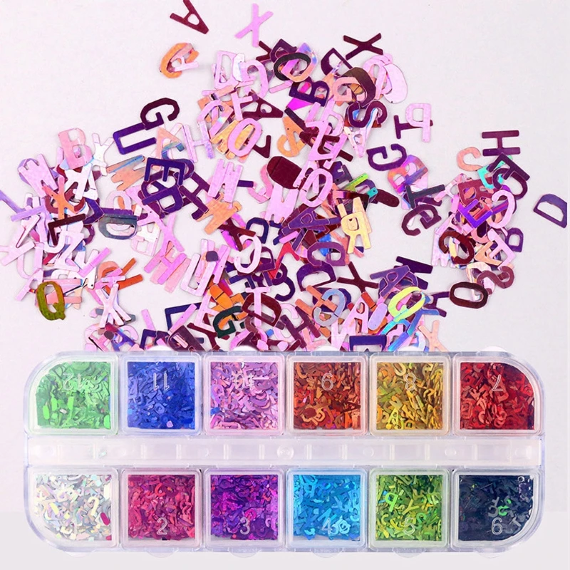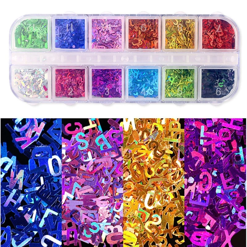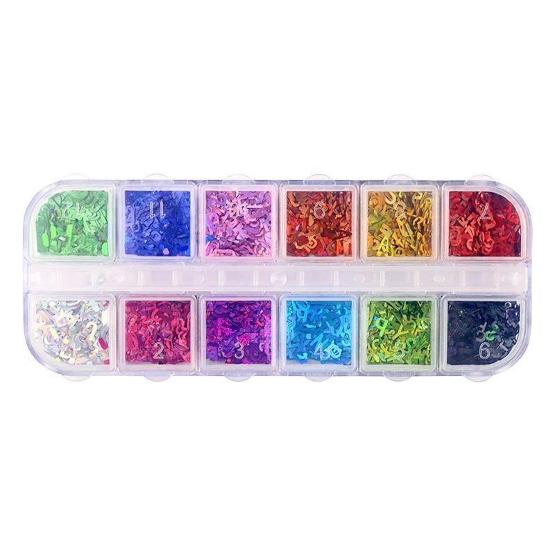 12 цветов переливающиеся блестки для ногтей с буквами сверкающие 3D...