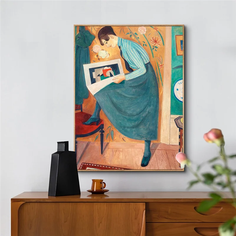 Девушка для чтения абстрактный настенный художественный постер скандинавский винтажный холст с принтом картина для гостиной спальни Декор