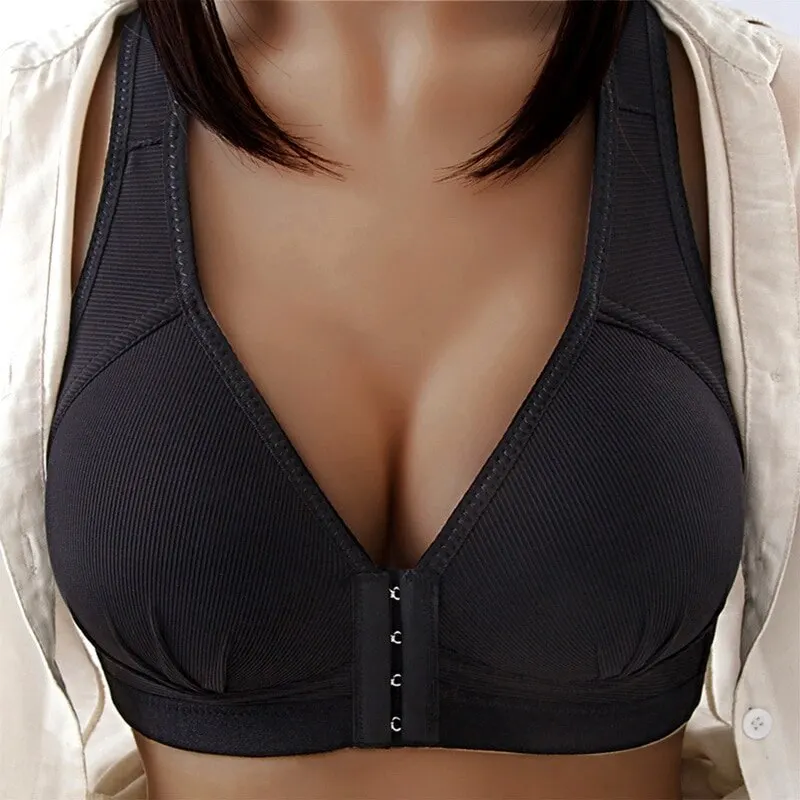 Бюстгальтер пуш-ап однотонный, без косточек, с застежкой спереди, размера плюс