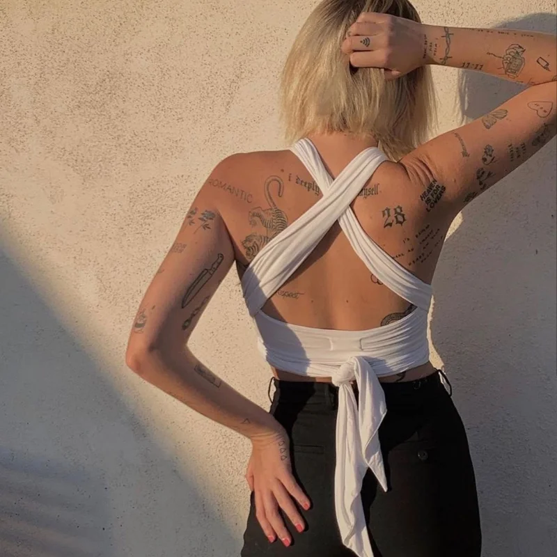 Кроп-Топ женский с лямкой через шею, модный бандажный Топ без рукавов, пикантная майка с открытой спиной, однотонный бюстье, на лето