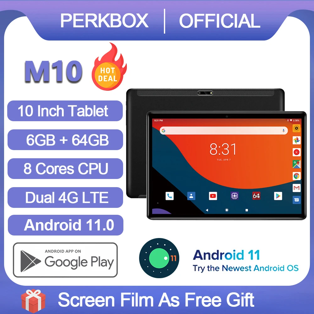 Планшет Perkbox на Android 11,0, восемь ядер, экран 10 дюймов, 6 ГБ + 64 ГБ