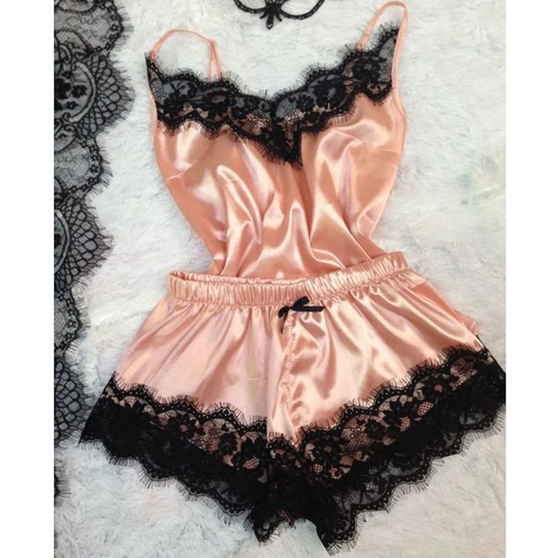 Женская атласная ночная рубашка, с кружевом, цвет в ассортименте, 2 шткомплект
