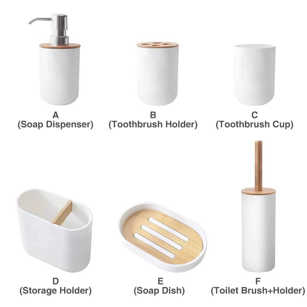 Идеальный аксессуар для ванной комнаты: Есть шесть видов аксессуаров, вы можете купить по мере необходимости, дозатор для лосьона, стакан, держатель для зубной щетки, мыльница, держатель для хранения и туалетная щетка с держателем.