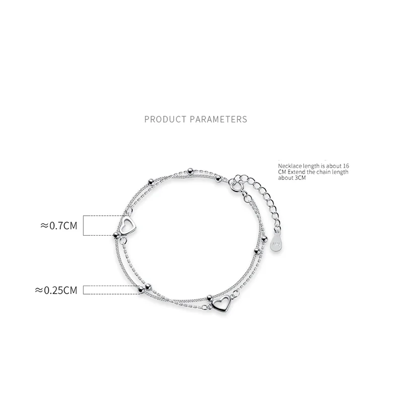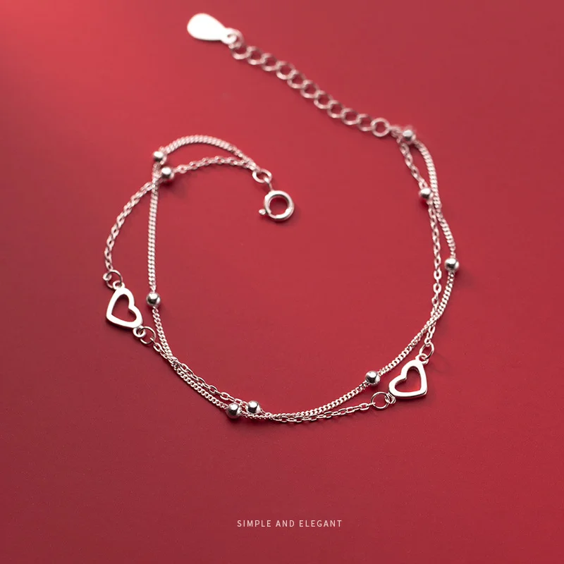 Женский двухслойный браслет из серебра 925 пробы с сердечками