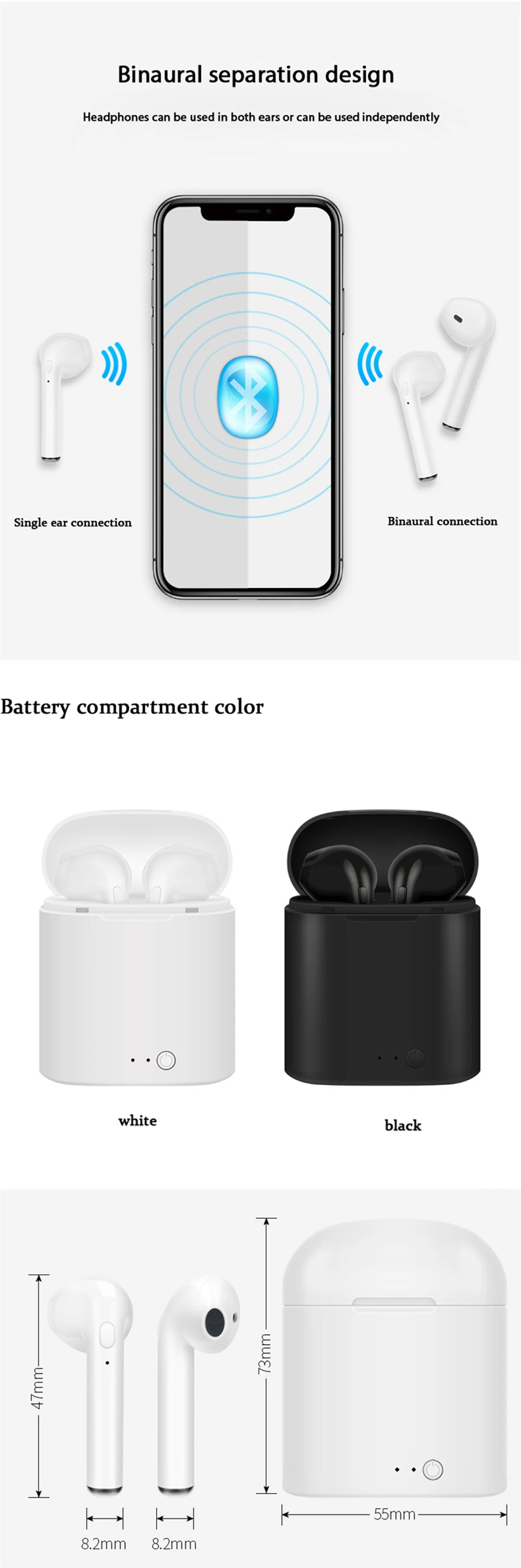 Горячая Распродажа I7s TWS Bluetooth наушники для всех смартфонов с...