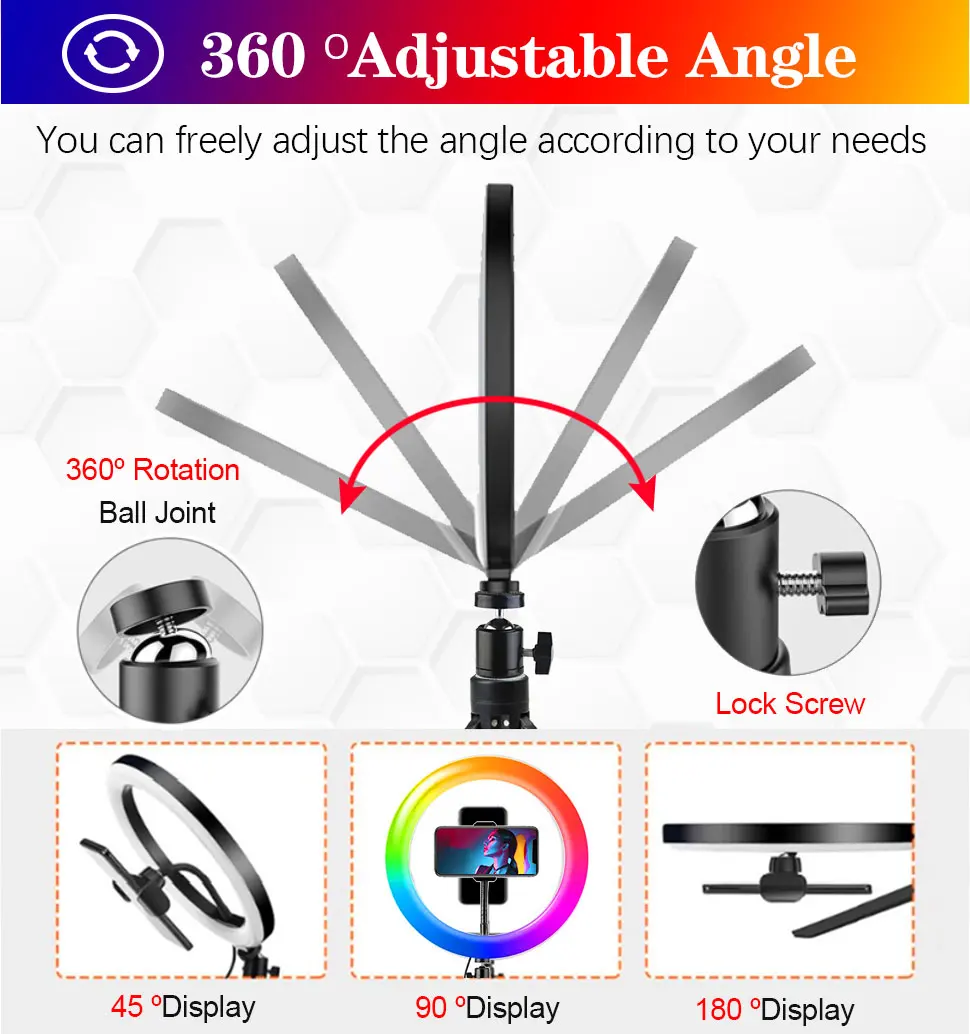 Кольцевой светильник для селфи, мягкий светодиодный светильник RGB ...