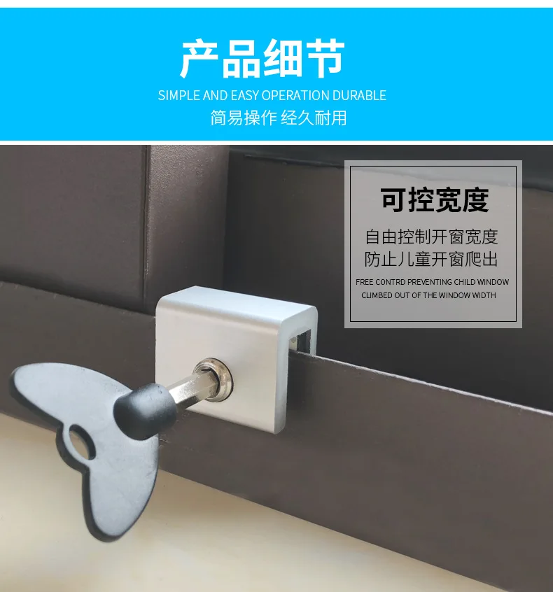 Замок на окна для защиты от детей, регулируемый раздвижной, с ключами, алюминиевый сплав