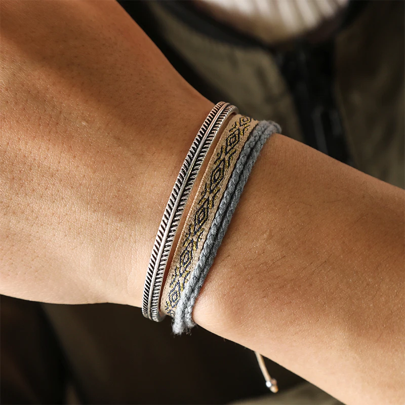 Горячая Распродажа 925 посеребренные винтажные декоративные листья манжеты мужской браслет Тибетский буддизм Дружба Узел веревка Gangle