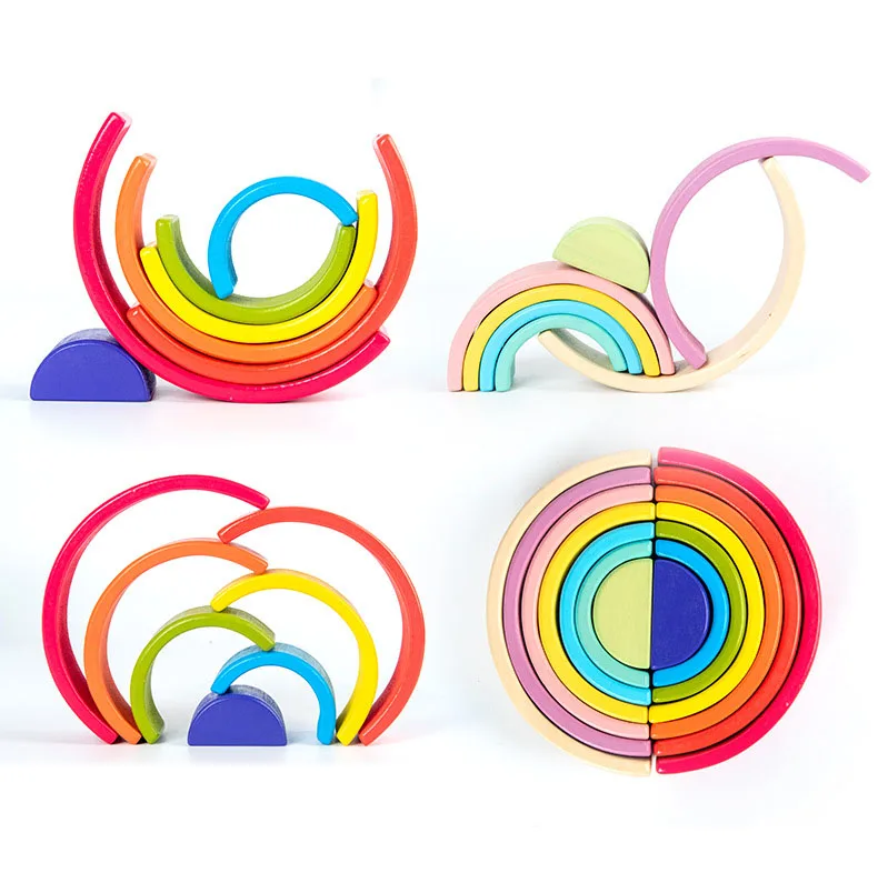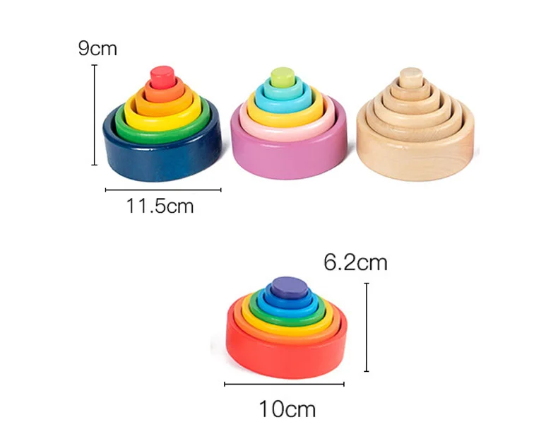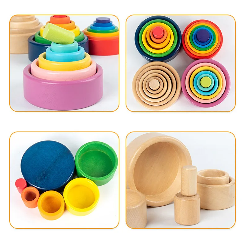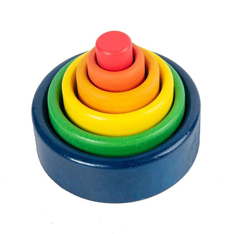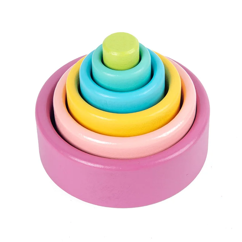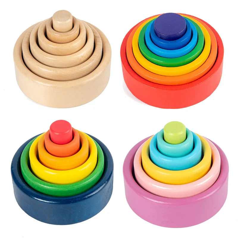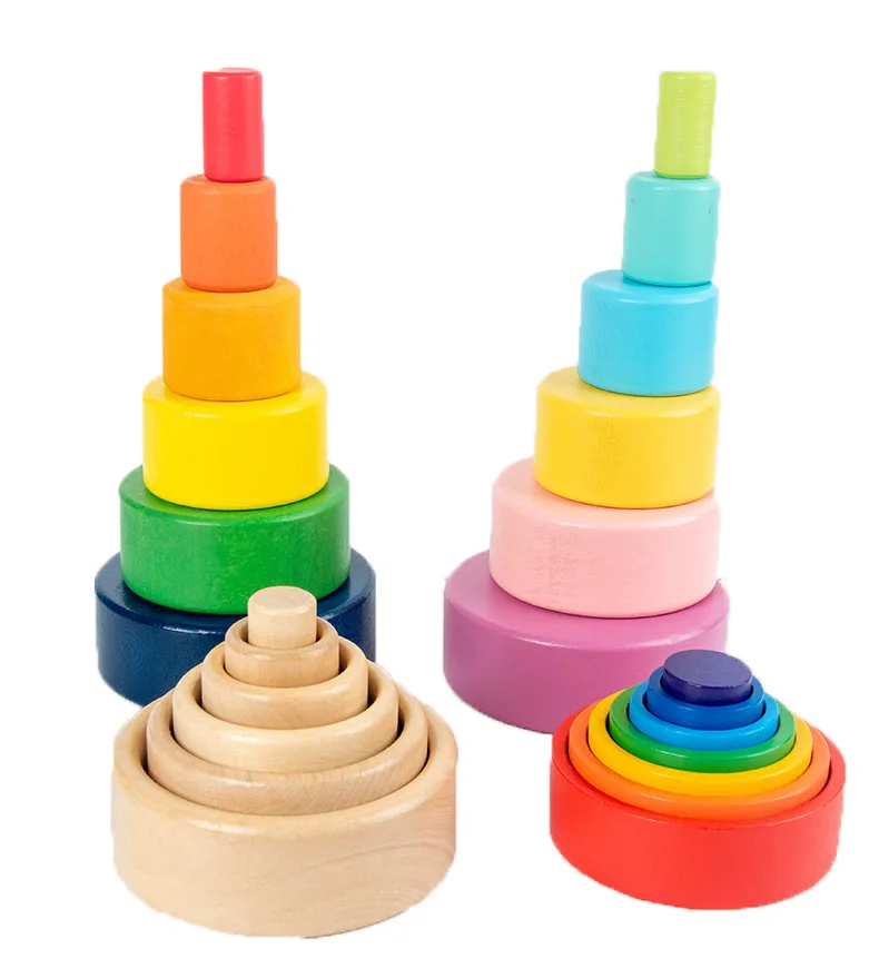 Деревянные радужные блоки, сложенные чашечки, конструктор, деревянный Радужный штабелер, штабелируемые игрушки для детей, Монтессори, развивающая Радужная игрушка