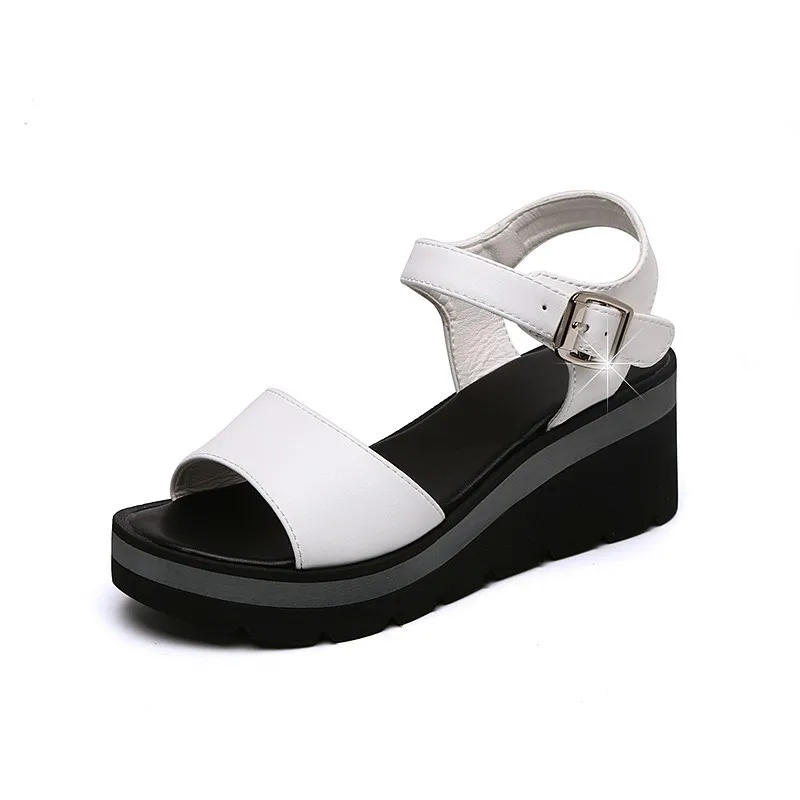 Сандалии женские на танкетке 6 см, Босоножки с открытым носком, повседневная обувь на танкетке, цвет черныйбелый, лето 2021