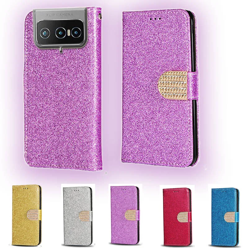 Роскошный блестящий кожаный чехол-книжка с бриллиантами для телефона Asus Zenfone 8 Flip ZS672KS, чехол с функцией подставки и отделением для карт