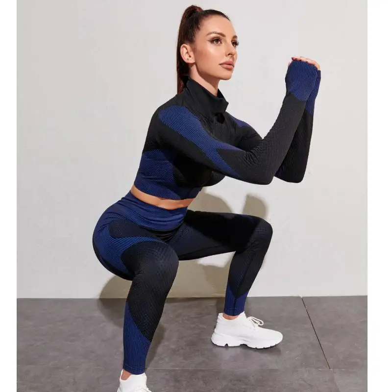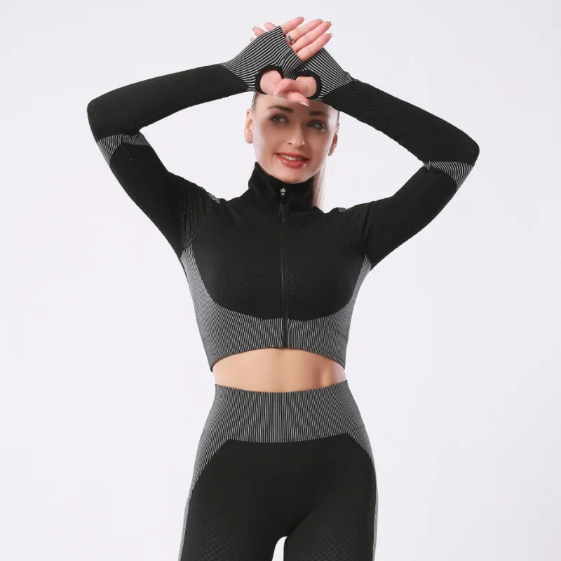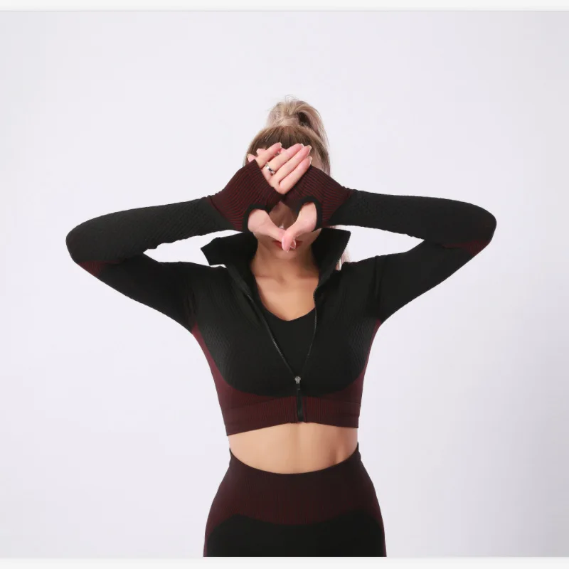 Женские Бесшовные комплекты для йоги 2 шт.3 шт. женский спортивный костюм на молнии с длинным рукавом + Леггинсы спортивные костюмы для фитнеса размеры s-xl