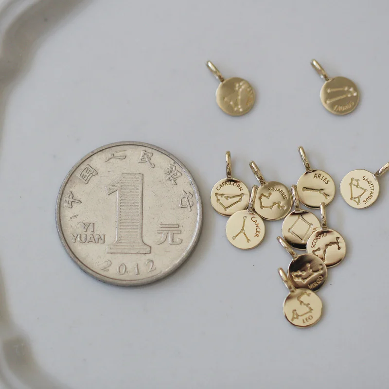 Золотая пачка, чистое ожерелье из 9 карат золота, кулон для женщин, 12 созвездий, маленькая золотая монета, стиль мини, блестящий кулон, подарок, бесплатная доставка