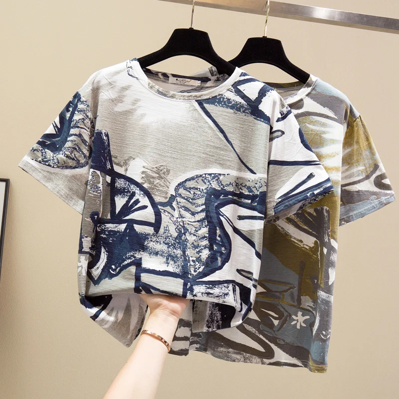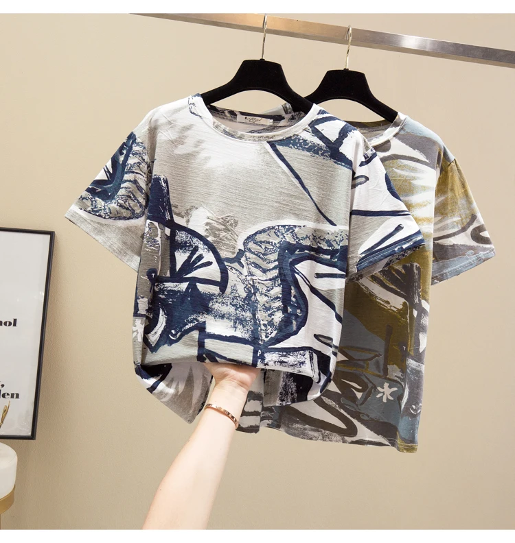 Новые летние модные футболки с короткими рукавами и принтом с креативным принтом, женские свободные повседневные удобные женские топы с круглым вырезом