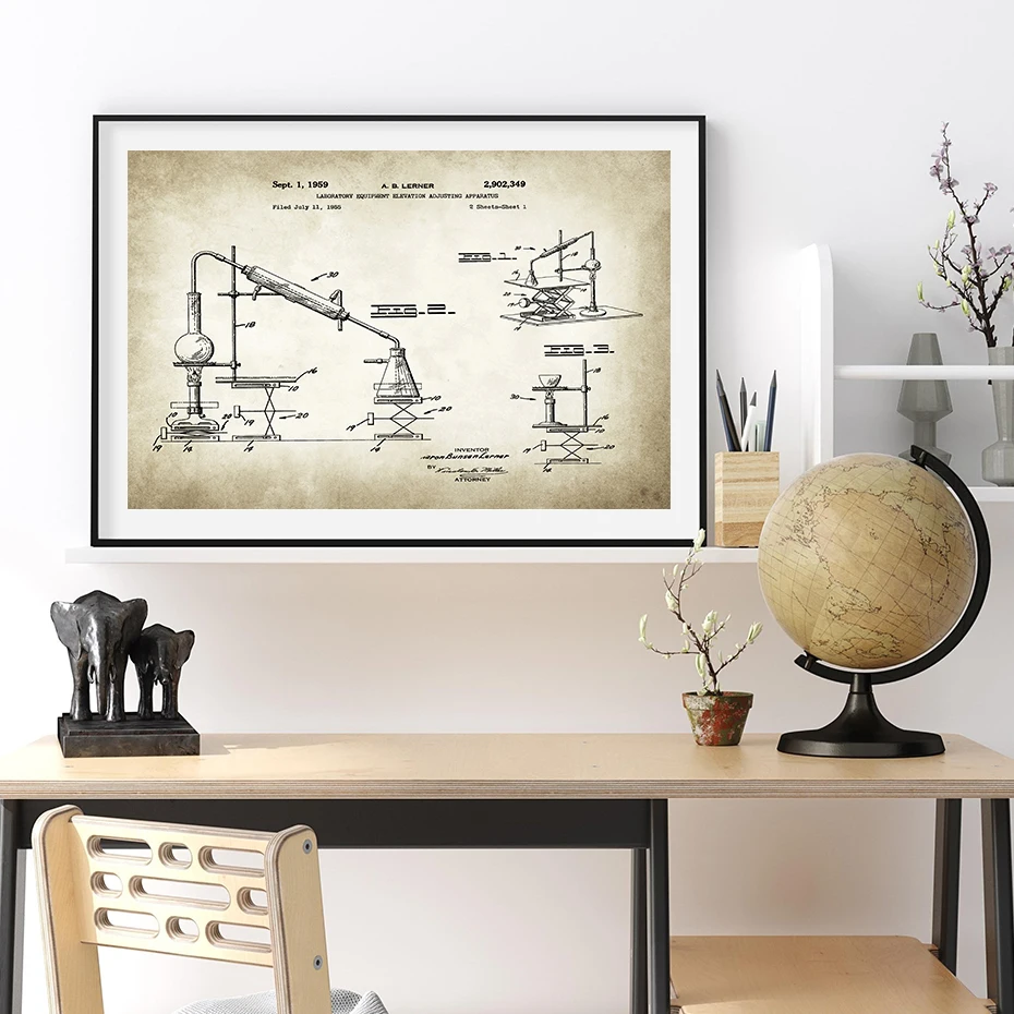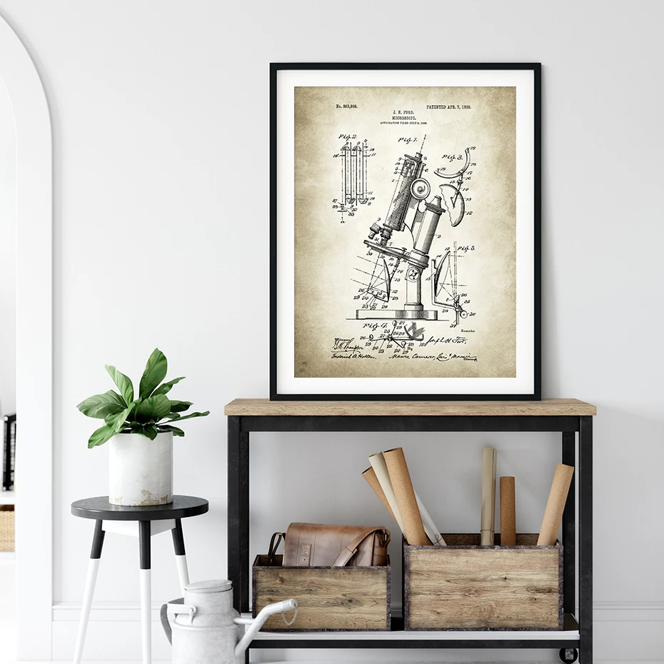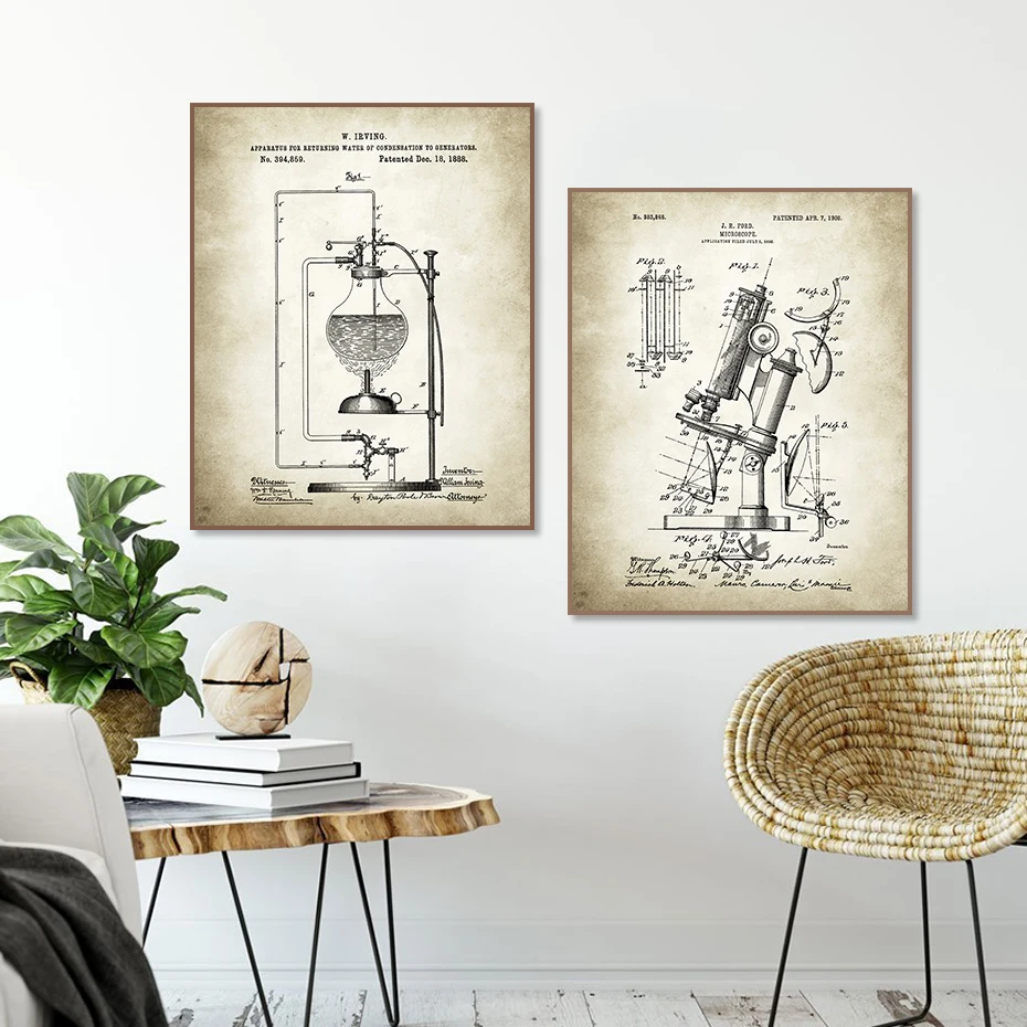 Винтажный микроскоп, патент, химия, периодические элементы стола, плакат, холст, живопись, настенная живопись, картина для гостиной, домашний декор