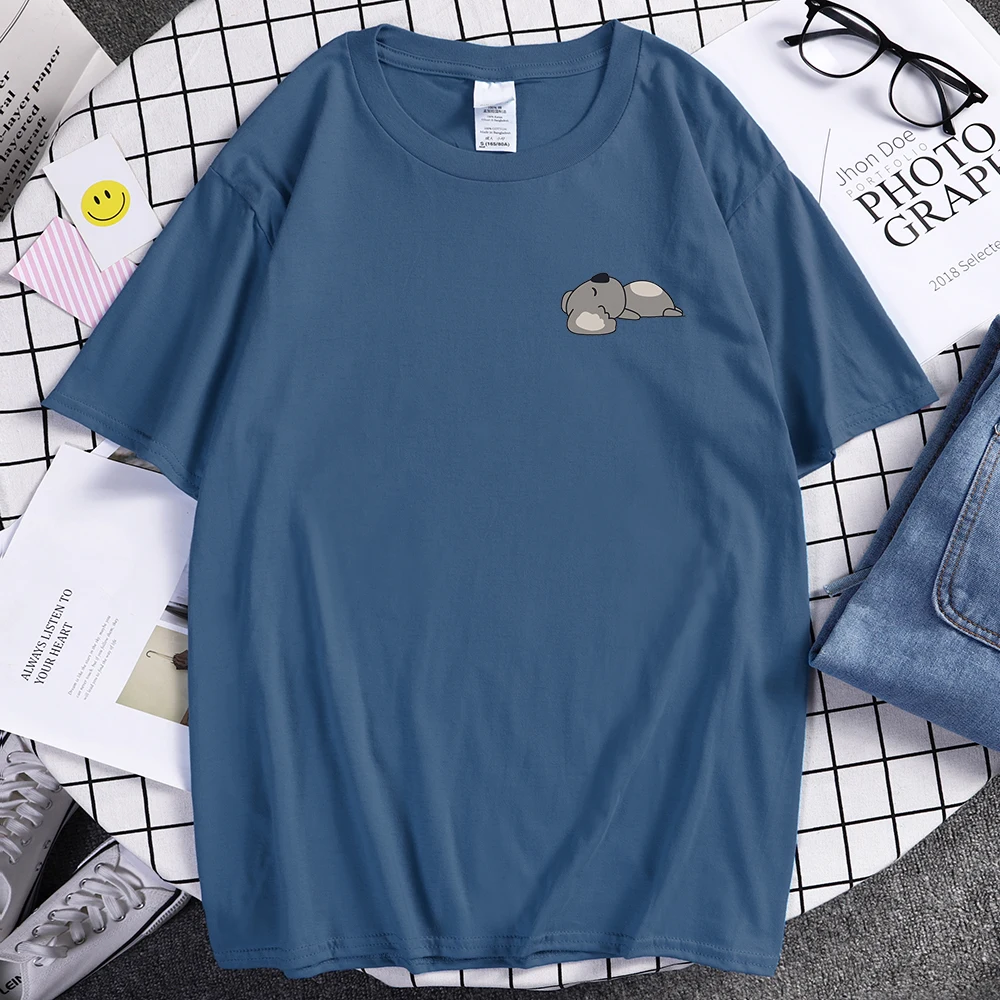 Футболка мужская с принтом коала, лежащая на земле, летняя, мягкая, большого размера
