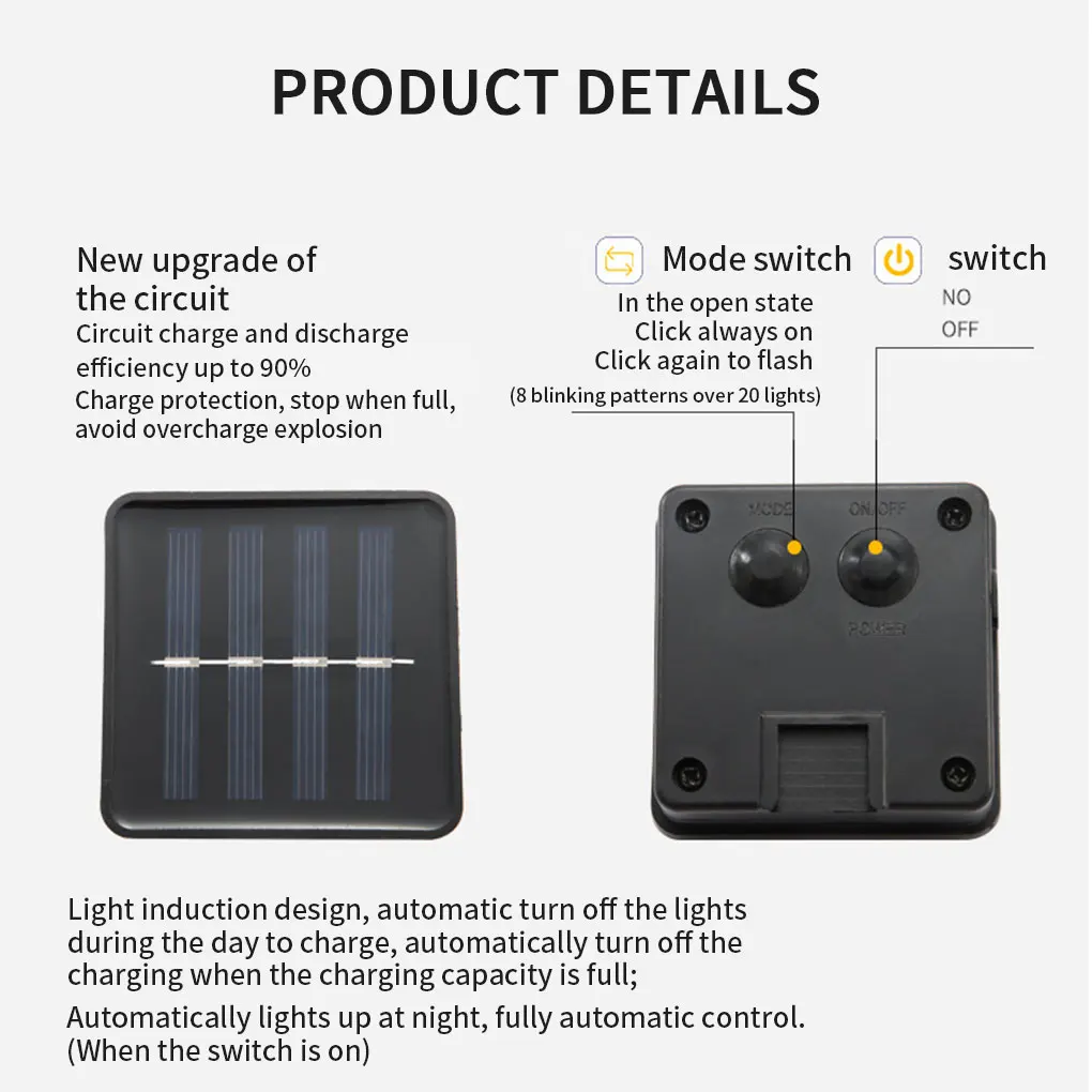 Есть 8 видов режимов освещения на выбор, подходит для различных случаев и создания романтической атмосферы для вас, включая вечерние, свадебные, фестивальные и другие.Этот грибной струнный светильник легко разбирается и украшает, солнечный корпус легко заряжать, и он используется для длительного времени после полной зарядки.Этот тип струнного светильник является водонепроницаемым, который может выдерживать экстремальные температуры, такие как дождь, ветер и влажный климат.Эта наружная струнная лампа может быть зафиксирована в любом месте, которое вам нравится, например, сад, двор, парк, дерево и другие места, подходит для барбекю, вечерние, фестивальные и вечерние.Этот садовый светильник является гибким и не влияет на другие лампы, поэтому вы можете заказать его без беспокойства.Спецификация:Материал: линия: ПВХ, водонепроницаемый чип, светодиодный энергосберегающий бисер.Цвет: как на фотографии.Размер: как на фотографии.Светильник: теплый белый, яркий.Солнечная панель: 2 в 185 мАч.Режим: 8 уровней.Время работы: дневное: 6-8 ч, ночное: 8-12 ч.Примечание:В связи с неточной передачей цвета на экране монитора фактический цвет товара может немного отличаться от цвета на изображении.Пожалуйста, допускайте небольшое отклонение в данных измерений и убедитесь, что вы не возражаете перед заказом.Посылка включает в себя:1x струнный светильник.