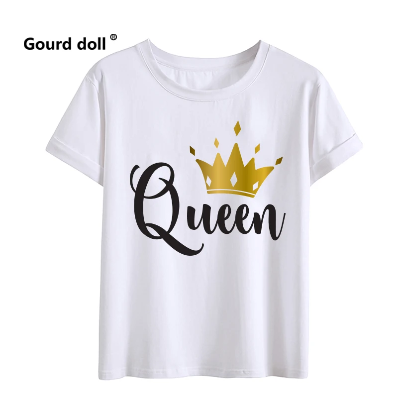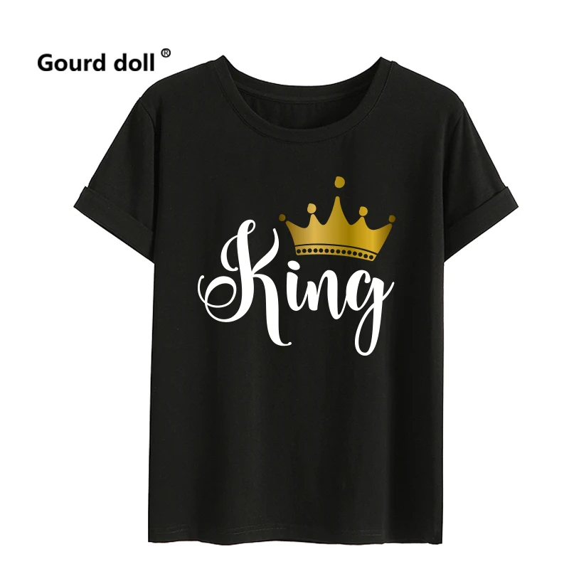 Футболка для пар King Queen, футболка в стиле Харадзюку, женская одежда для пар, летние топы для мужчин и женщин, с принтом короны