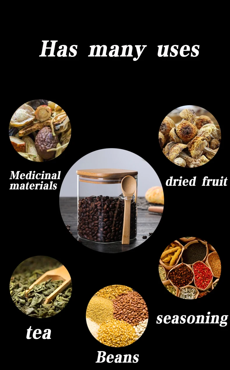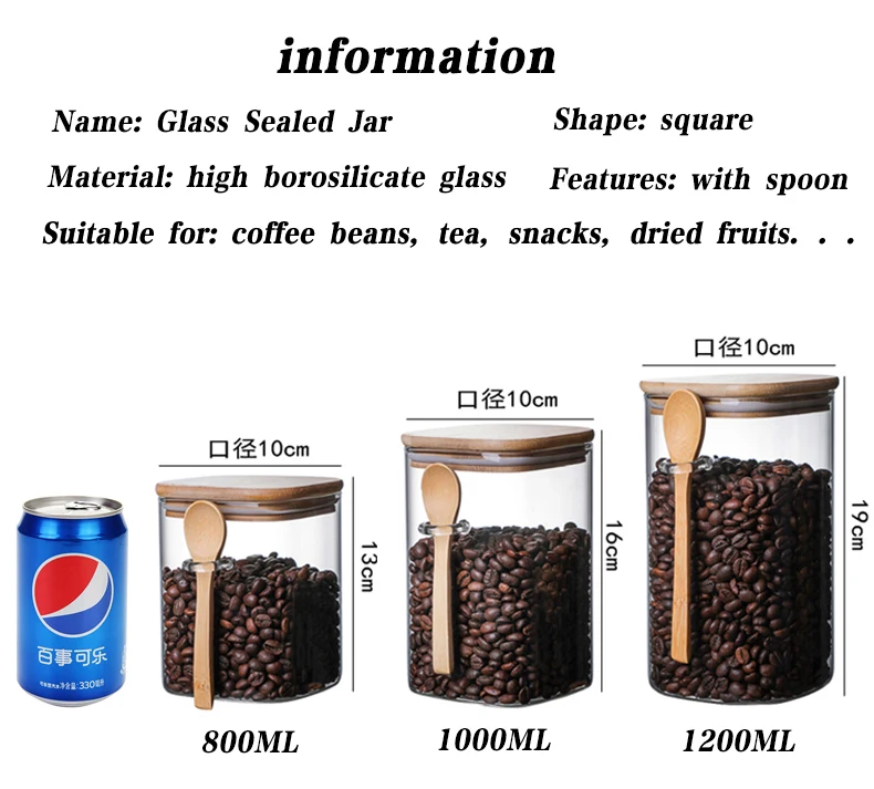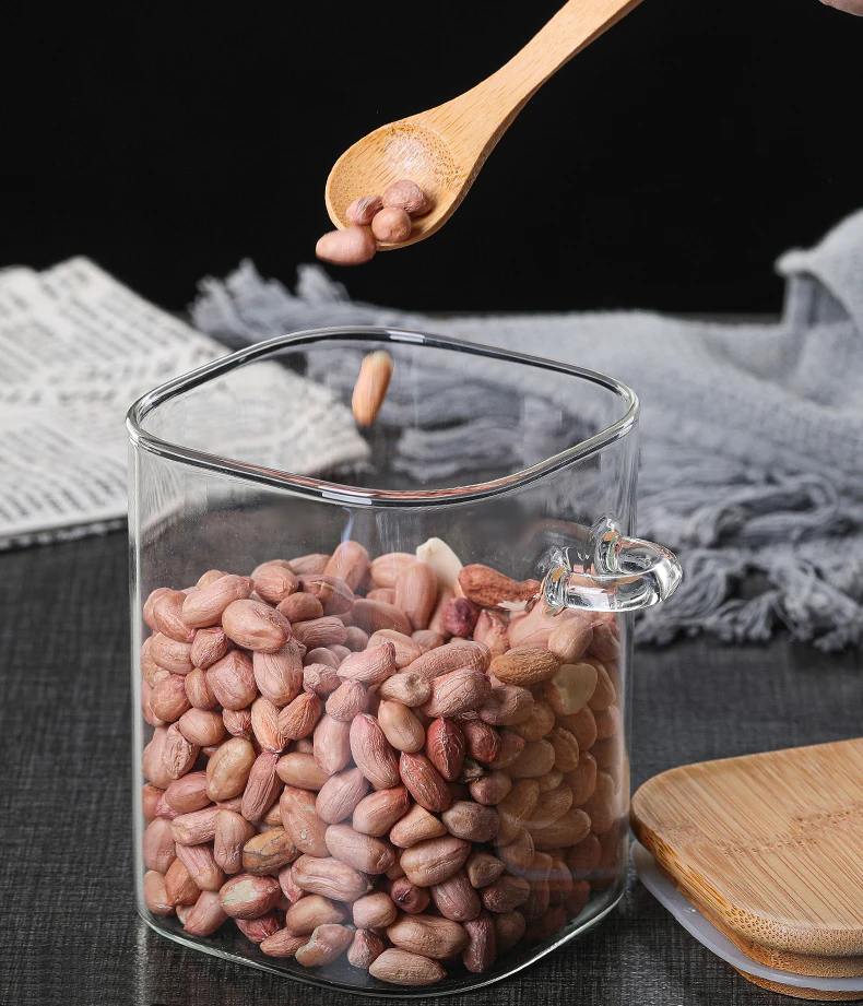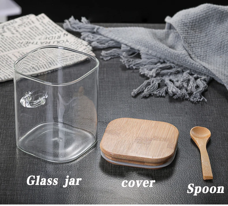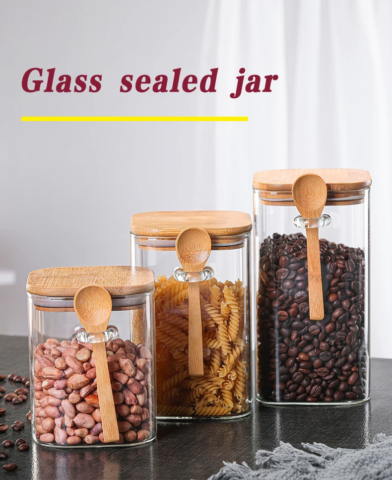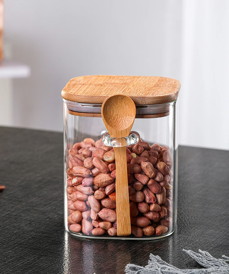 Герметичная банка из боросиликатного стекла с ложкой, Бамбуковая крышка, емкость для хранения кофейных зерен, чая, приправ, разнообразная бутылка для хранения