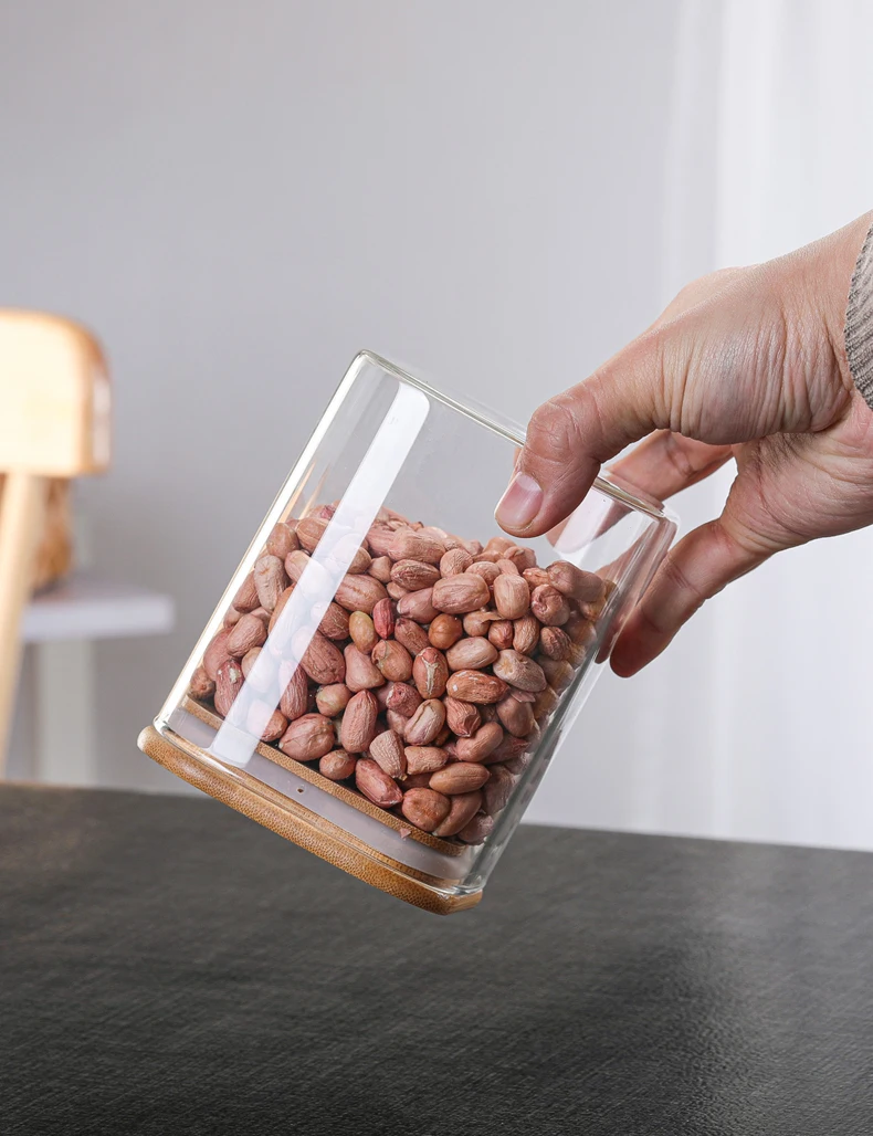 Стеклянный герметичный резервуар для хранения 800-1200 мл с деревян...
