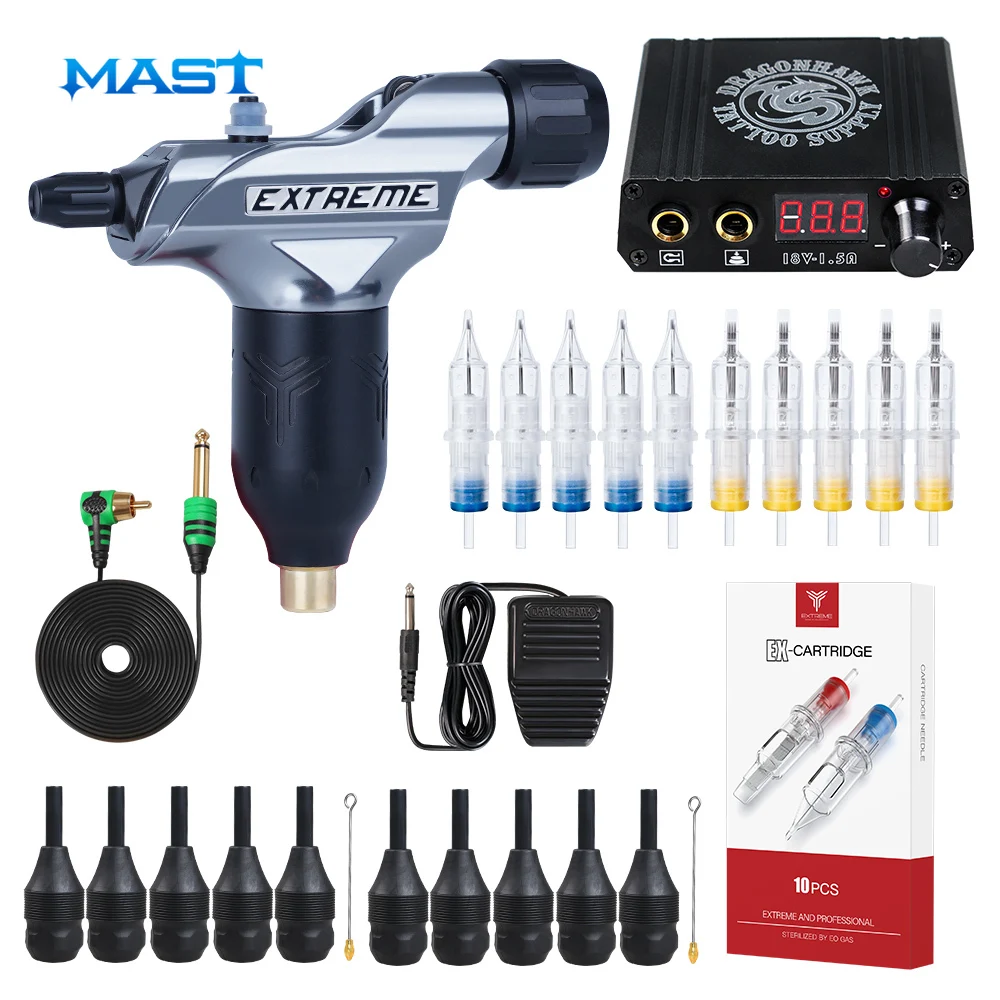 Регулируемый мягкий и жесткий роторный пистолет для татуировок, мини-блок питания с ЖК-дисплеем, набор RCA, картриджи для макияжа, иглы, товары для татуировок