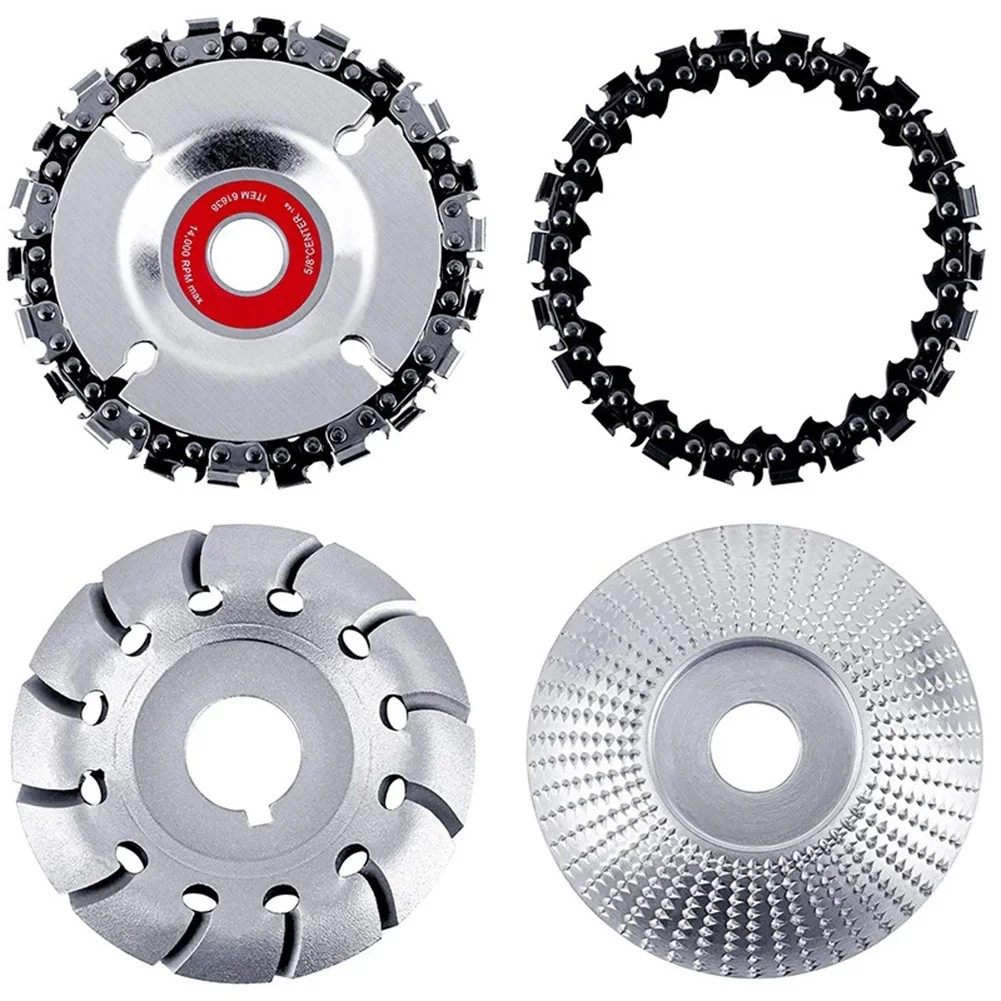 4 шт. шлифовальный диск с цепью набор 12 зубьев деревянный формирующий диск для дерева угловой Полировочный шлифовальный диск инструмент со сменная цепь инструмент для резьбы