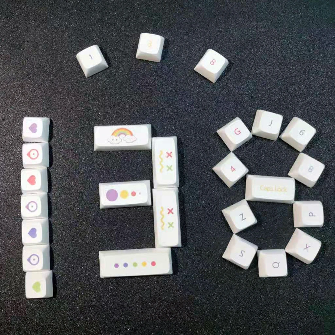 140 шт QX1 профиль PBT краситель-sub Keycaps для 61 87 104 клавиш/GH60/RK61/матрица/шутка настраиваемая игровая клавиатура-английская раскладка с цветным рисунком ручки
