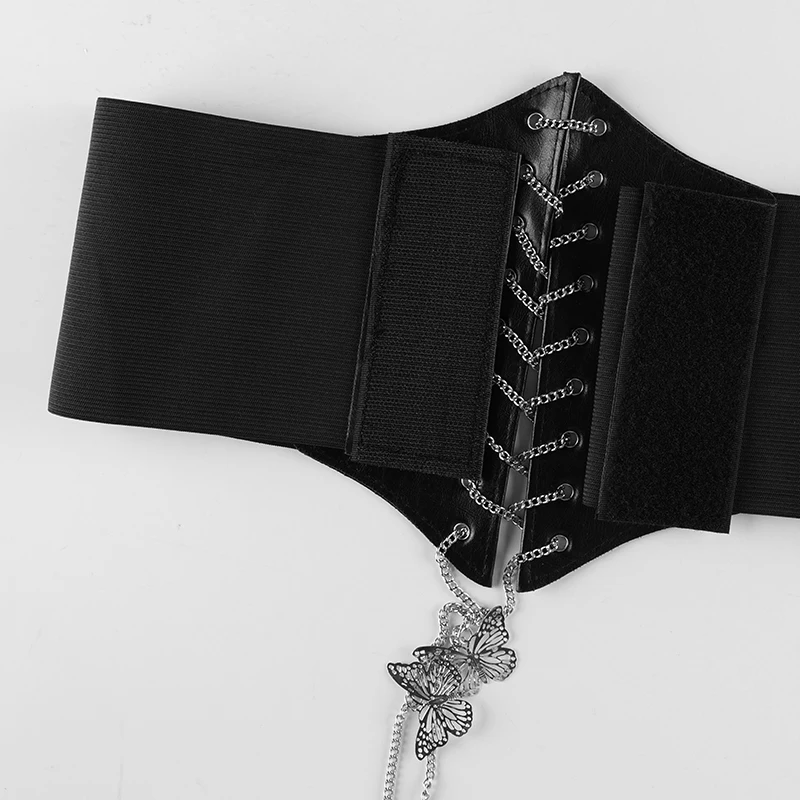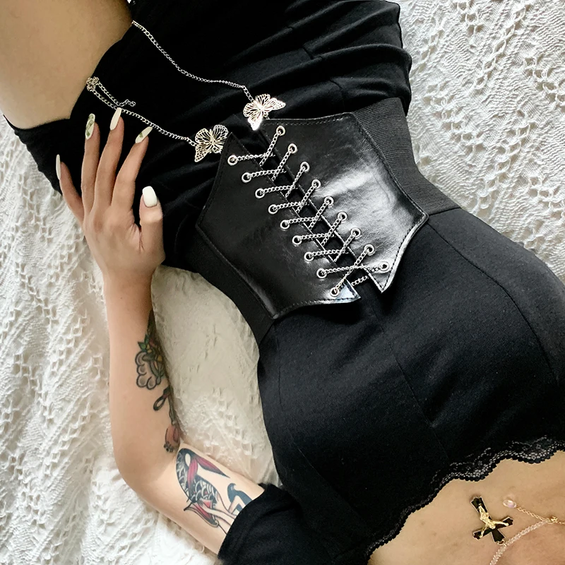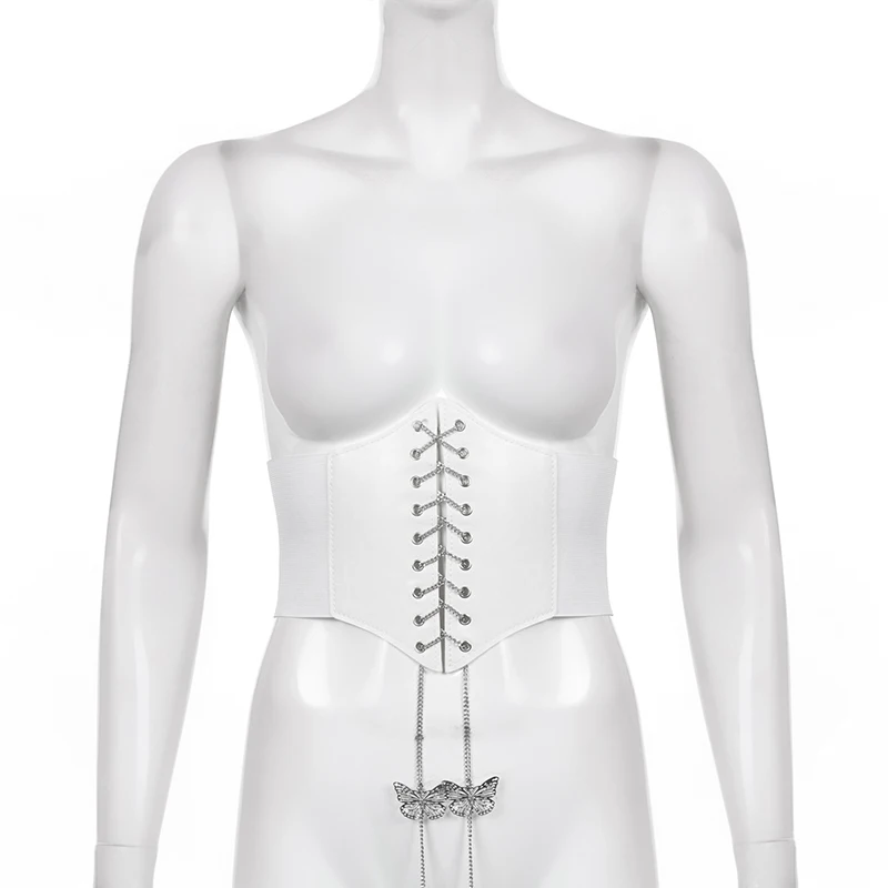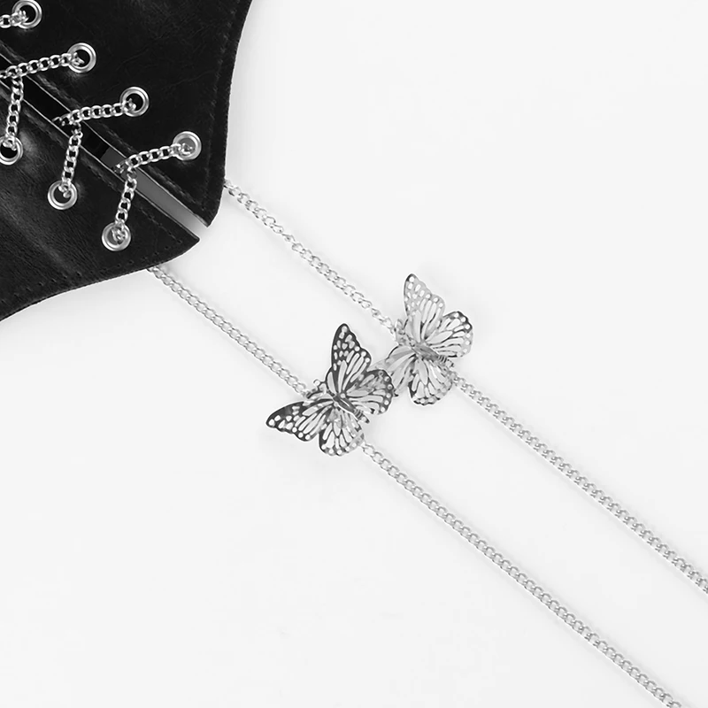 Уличный Женский корсет-топ Darlingaga, из искусственной кожи, с цепочкой и бабочками, в готическом стиле