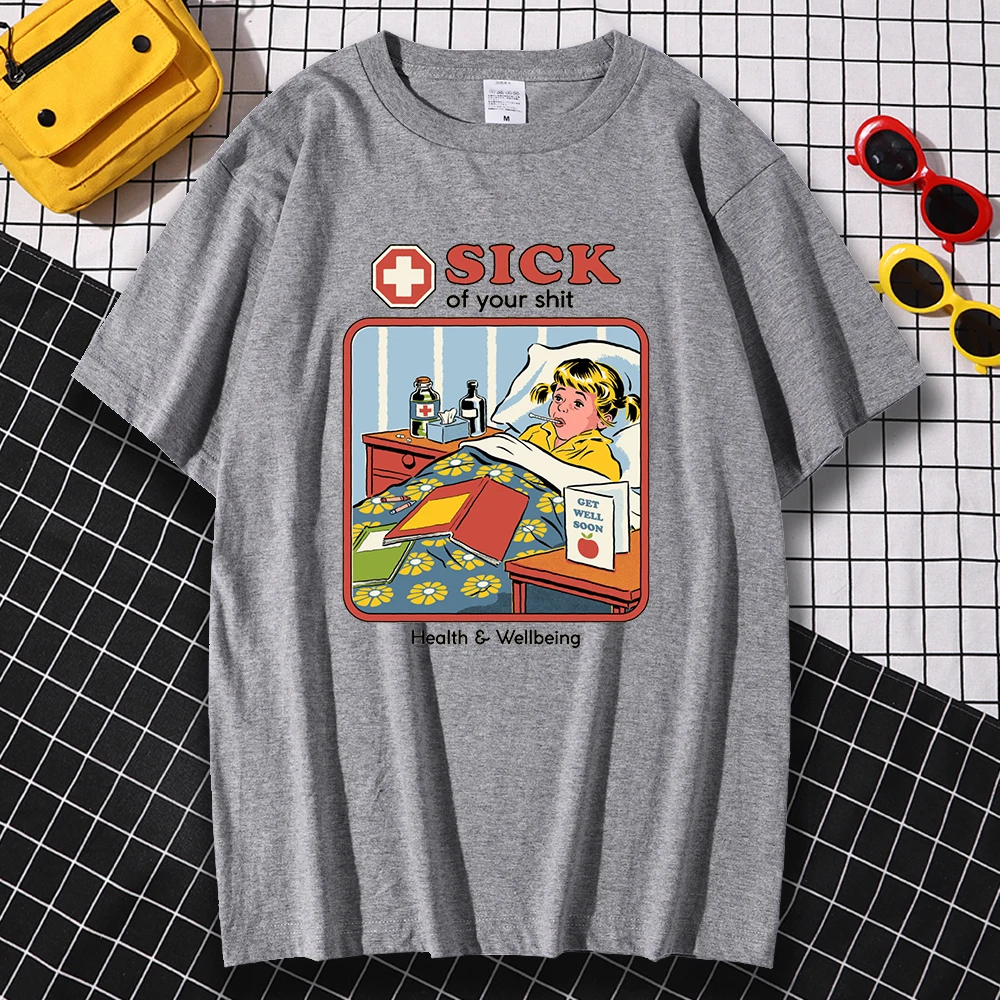 Футболки мужские с принтом Sick Of Your Ass, Винтажные Футболки с аниме, удобная Эстетическая одежда, модная мужская футболка с круглым вырезом