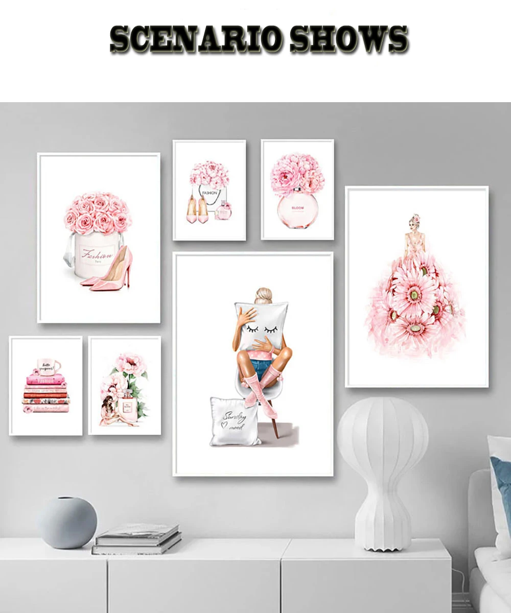 Современная розовая модная настенная Картина на холсте Цветочная де...