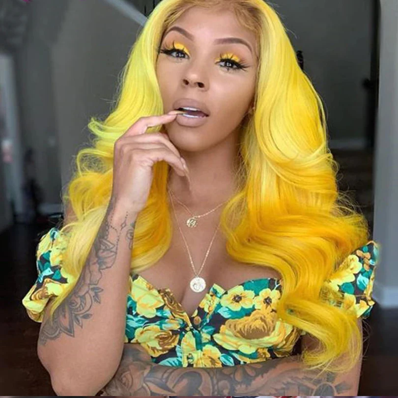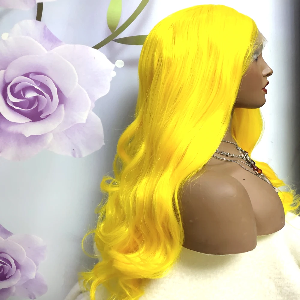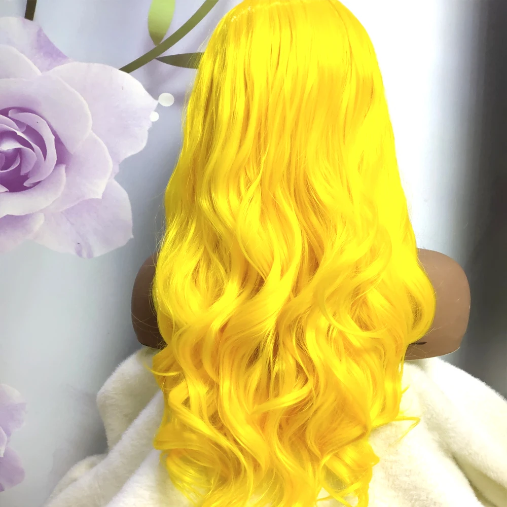 Высокая Температура желтый Синтетический 13*4 Синтетические волосы на кружеве парик естественная волна Синтетический глубокий Синтетические волосы на кружеве парик Косплэй парики для чернокожих Для женщин