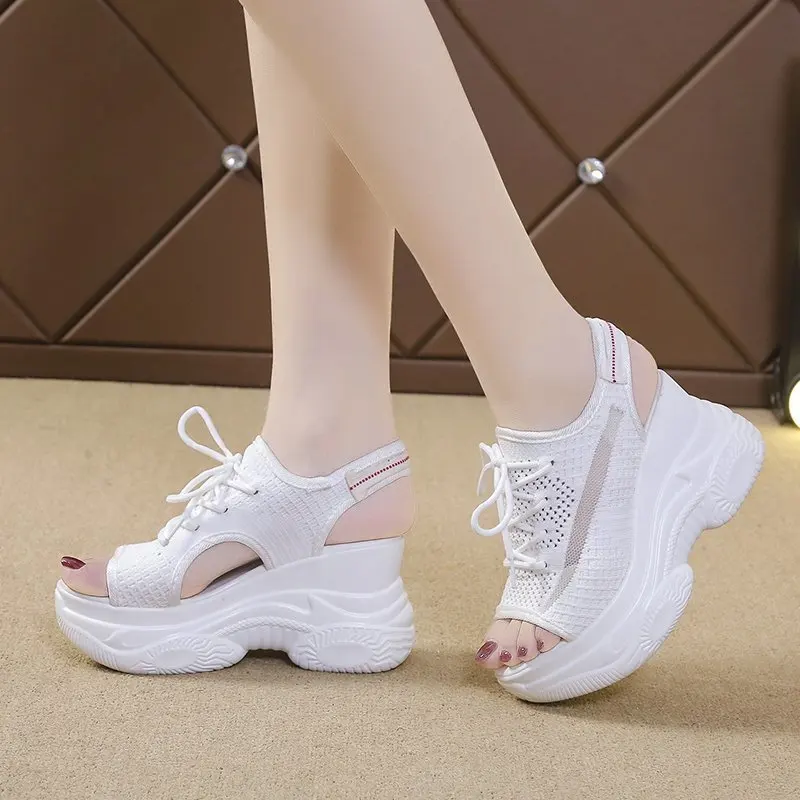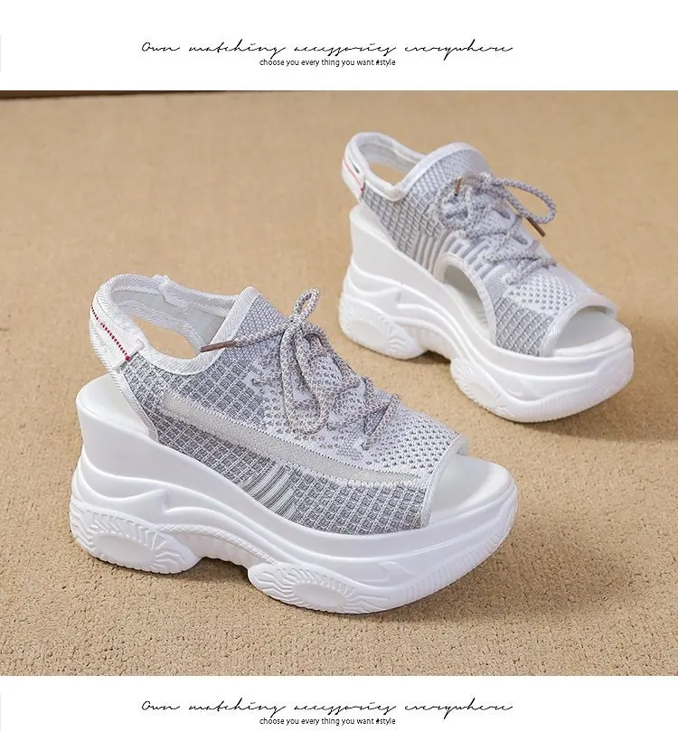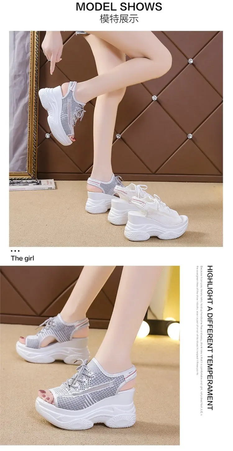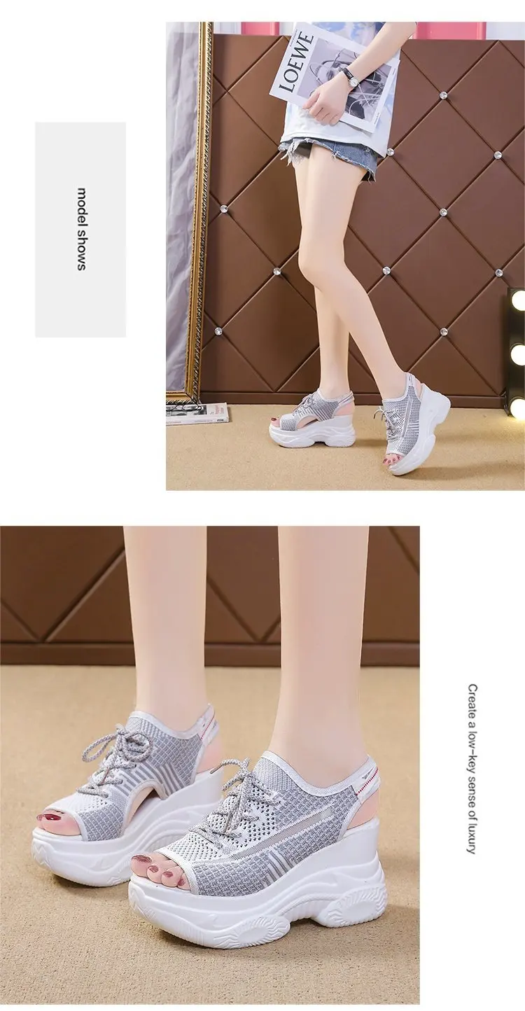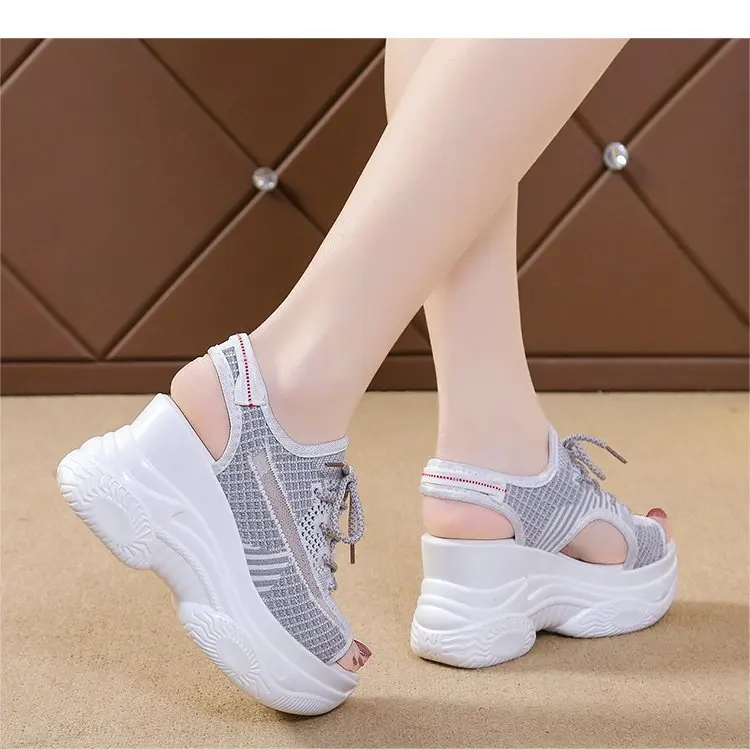 Летние женские кроссовки, новинка 2021, спортивные сандалии, модная сетчатая повседневная обувь, женские сандалии на платформе с мягкой толстой подошвой