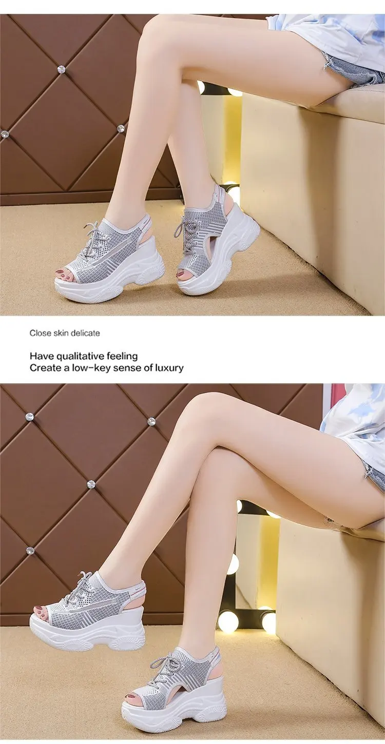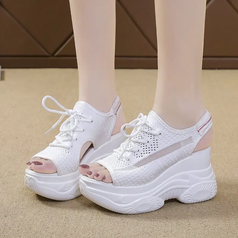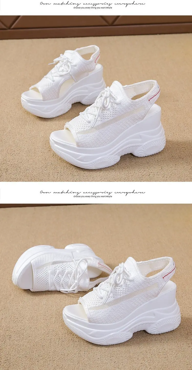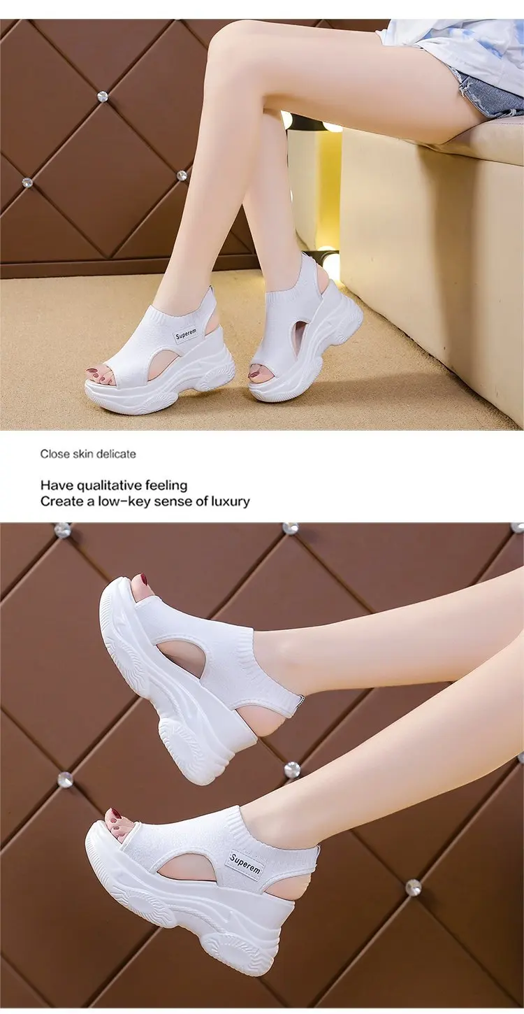 Летние женские кроссовки, новинка 2021, спортивные сандалии, модная сетчатая повседневная обувь, женские сандалии на платформе с мягкой толстой подошвой