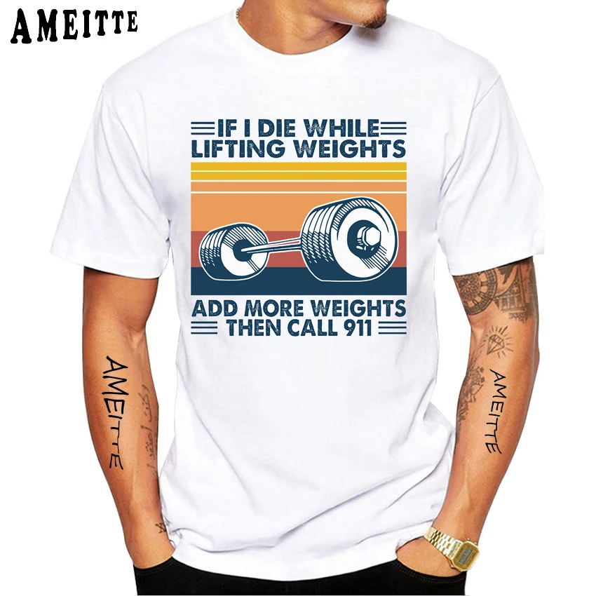 Футболка мужская с надписью If I Die во время подъема груза, винтажная Классическая рубашка, топ для фитнеса, белый повседневный, для мальчиков