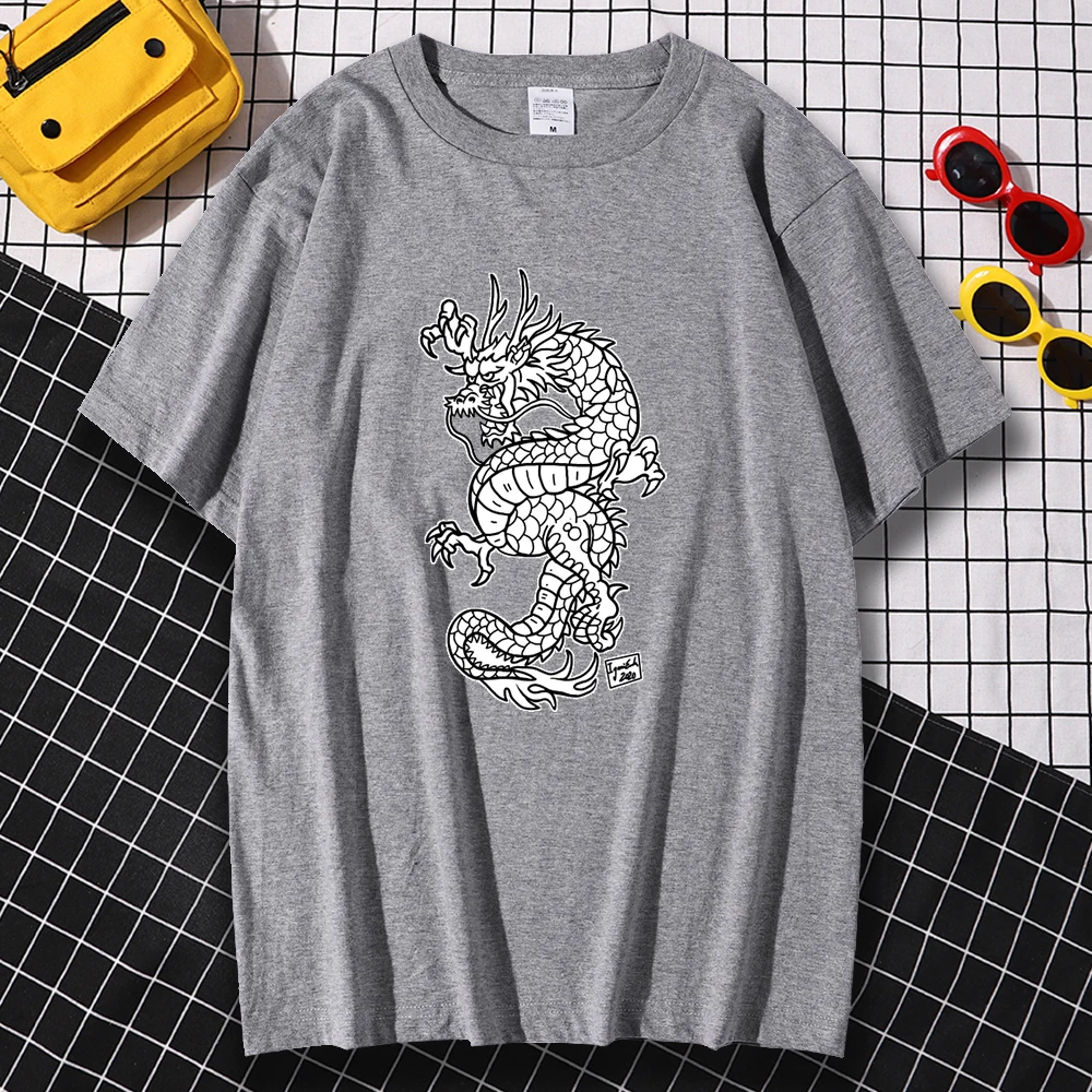 Футболка мужская с принтом восходящего дракона, модная мягкая Повсе...