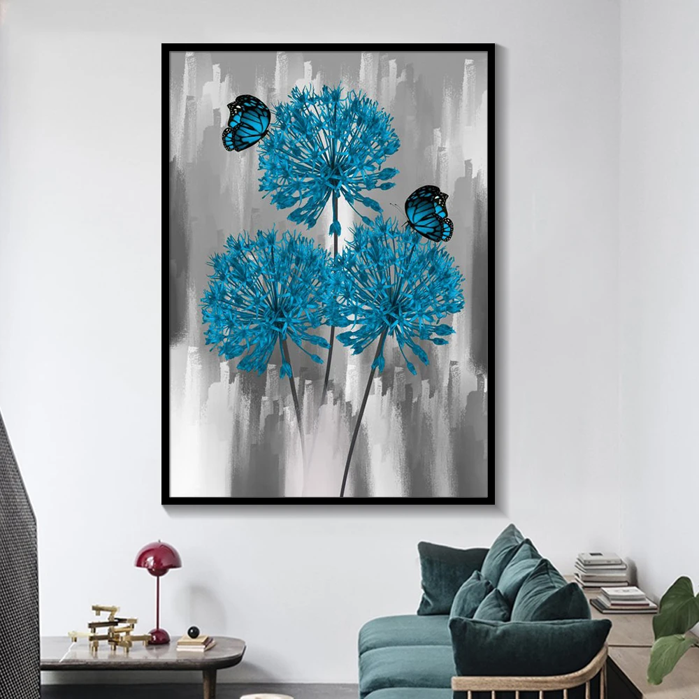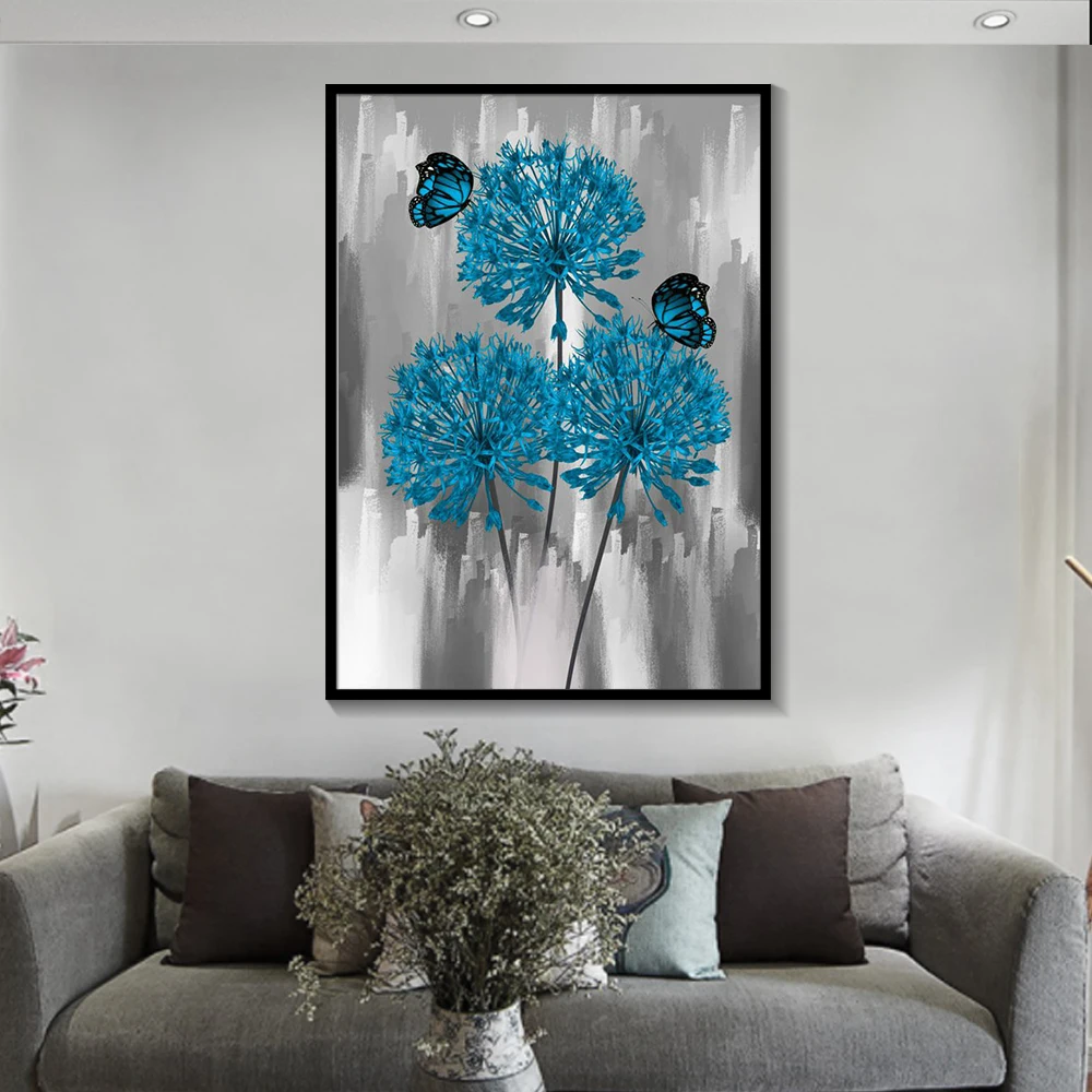 Плакат акварельный с голубыми цветами, настенная Картина на холсте ...