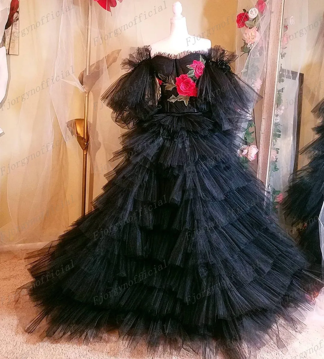 Черные удлиненные пухлый официальный вечерний многоярусные платья с фатиновой юбкой придворное платье для особых случаев вечерние платье Для женщин Вечернее халаты