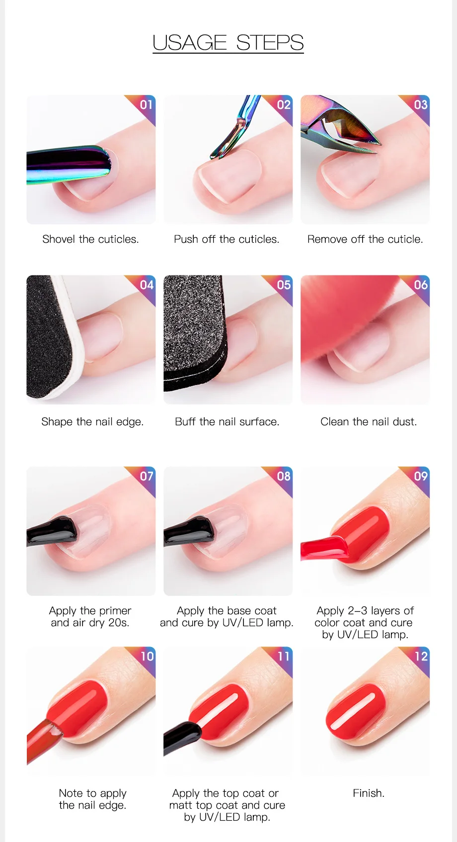 -6. Удалите липкий остаток на ногтях с помощью очищающего средства. Затем нанесите питающее масло кутикулы для увлажнения влаги в кутикулу и кожу вокруг ногтя.