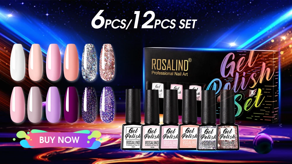 Гель-лак Rosalind для ногтей, эмалированный полуперманентный, многоцветный, удаляемый замачиванием, для украшения ногтей, СВЕТОДИОДНЫЙ УФ-светильник, базовое и верхнее покрытие, праймер