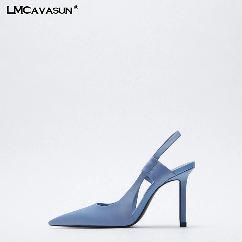 LMCAVASUN Темпераментная Женская обувь Новинка 2021 синие туфли с ремешком на пятке с острым носком на высоком каблуке весенние элегантные сандалии Сказочный ветер 10 см