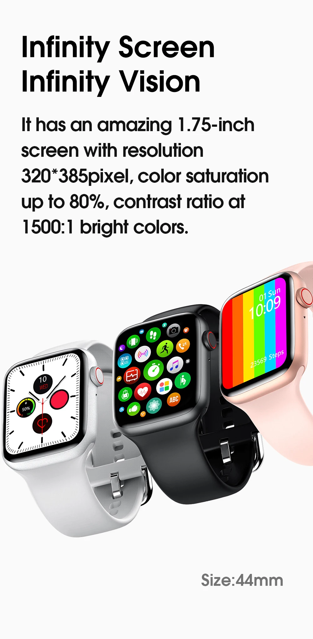 Основные пункты продажи: Поддержка звонков по Bluetooth, проверка температуры тела, частота сердечных сокращений, BP & ECG, шаги, фруктовый воск 5 размеров, 44 мм сменный ремешок, меню умного стиля улей, меню nine box, водонепроницаемость IP68 Чипсет процессора: MTK2502D Размер экрана: 1,75 HDIPS,320*385 Версия Bluetooth: 3,0, 4,0 Аккумулятор: литий-полимерный аккумулятор большой емкости 220 мАч Сенсорный экран: 2.5D изогнутый емкостный полный сенсорный экран Bluetooth Push:SMS, WeChat, электронная почта, Facebook новости и другие уведомления приложений напоминание Монитор сердечного ритма: монитор сердечного ритма, мониторинг сердцебиения 24 часа ЭКГ: анализ данных ЭКГ Шагомер: упражнения, потребление калорий, запись пробега Напоминание о малоподвижности: пришло время двигаться и менять свой нездоровый образ жизни Монитор сна: запись и анализ состояния сна научно и количественно Найти телефон: напоминание о потере. Двусторонний поиск Воспроизведение музыки с Bluetooth на вашем телефоне Вызов: Поддержка Bluetooth звонков с динамиком и микрофоном Другие функции: будильник, календарь, секундомер, компьютер Языки:Английский, французский, испанский, польский, португальский, итальянский, Малайзийский, индонезийский, чешский, голландский, немецкий, вьетнамский, турецкий, русский, тайский, греческий Упаковочный лист:
