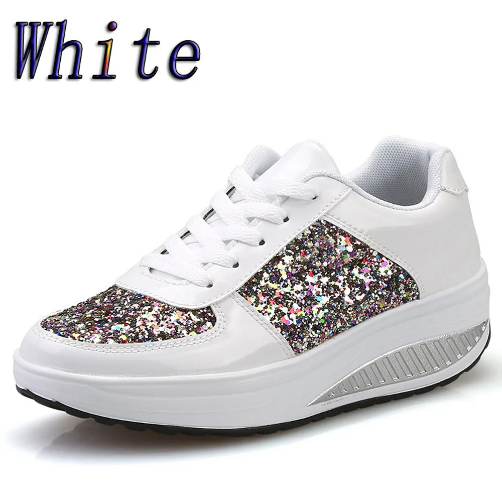 Женские кроссовки с блестками, повседневная спортивная обувь на танкетке с блестками, 2021