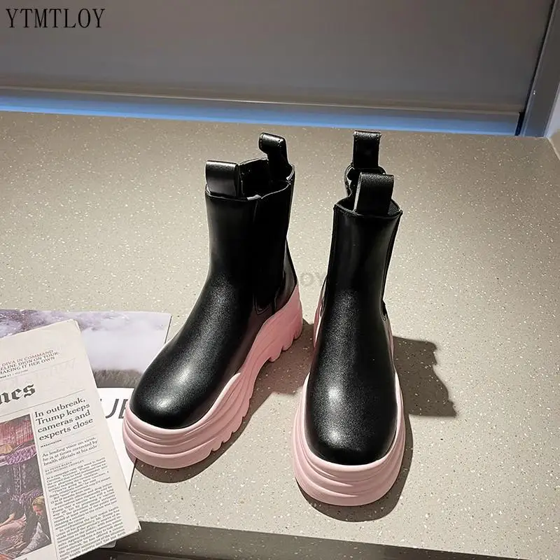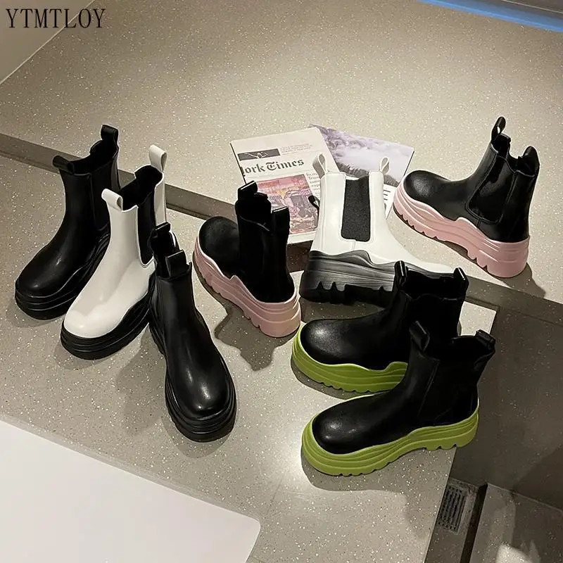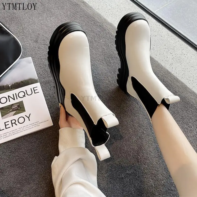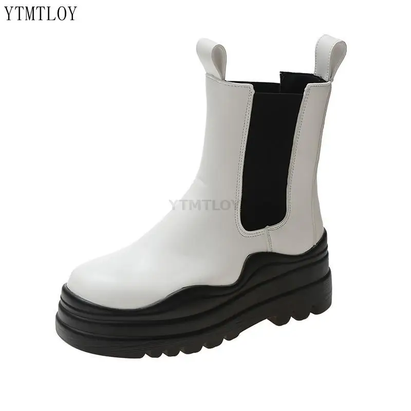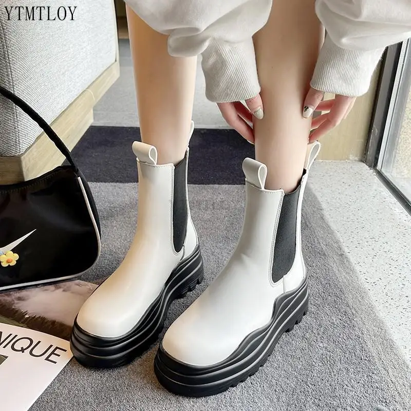 Женские ботинки челси на толстой подошве, зимние ботинки из натуральной кожи в британском стиле на платформе, модель 2021 года