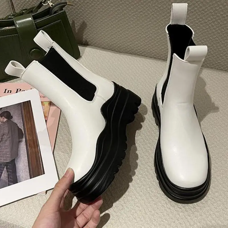 INS2021 г. Теплые женские ботинки из натуральной кожи, модные зимние ботинки с эластичным ремешком, толстые Клубные ботинки с квадратным носком, Botas De Mujer Chelsea
