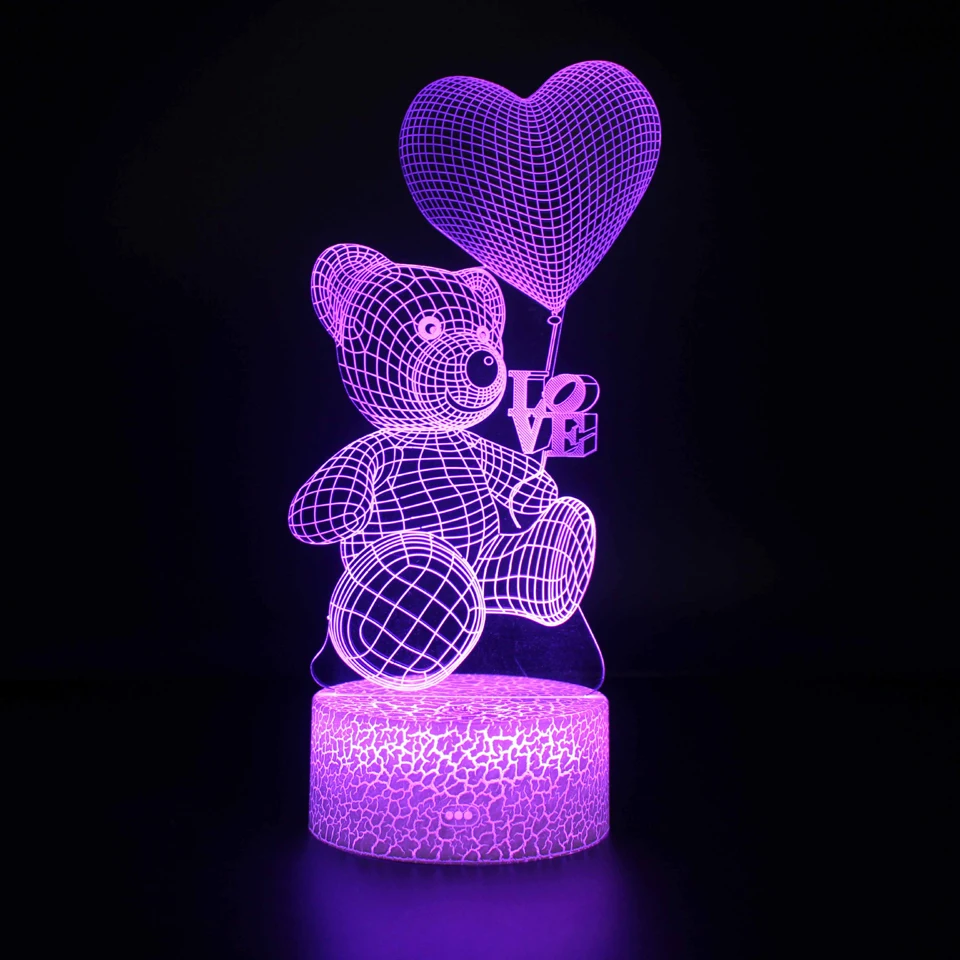 Маленькие цветсветодиодный светодиодные акриловые ночники с 3d-медведем, настольная лампа с сенсорным управлением, украшение для дома, настольная лампа