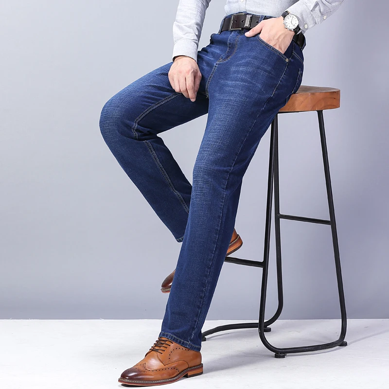 Брендовые мужские прямые из эластичного хлопка для маленьких девочек и мальчиков джинсы; Мужская модная деловая Классическая Стиль джинсовые штаны из денима брюки больших Размеры; Большие размеры 35-40, 42, 44, 46