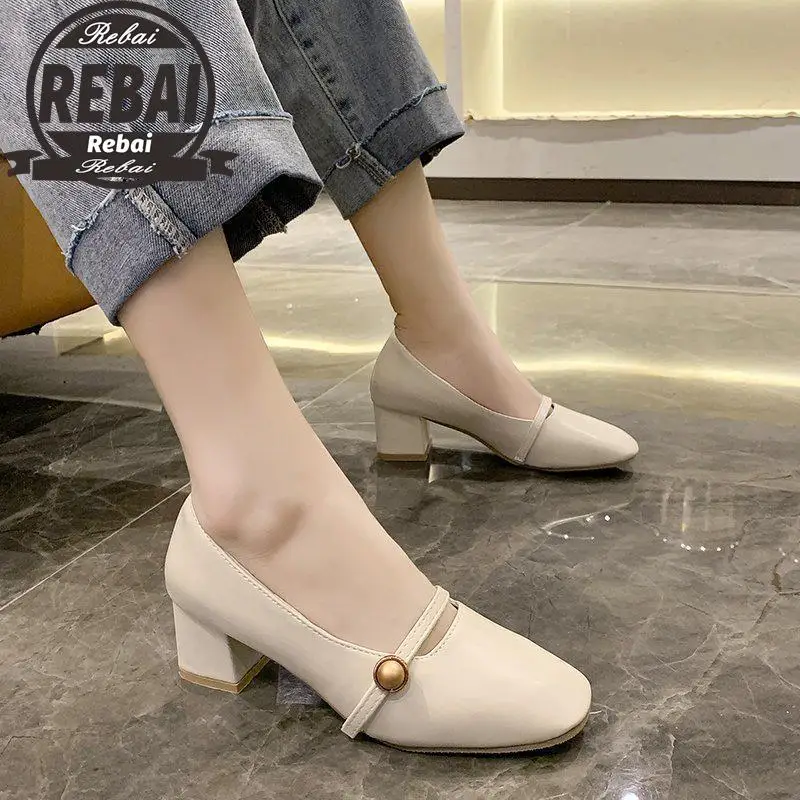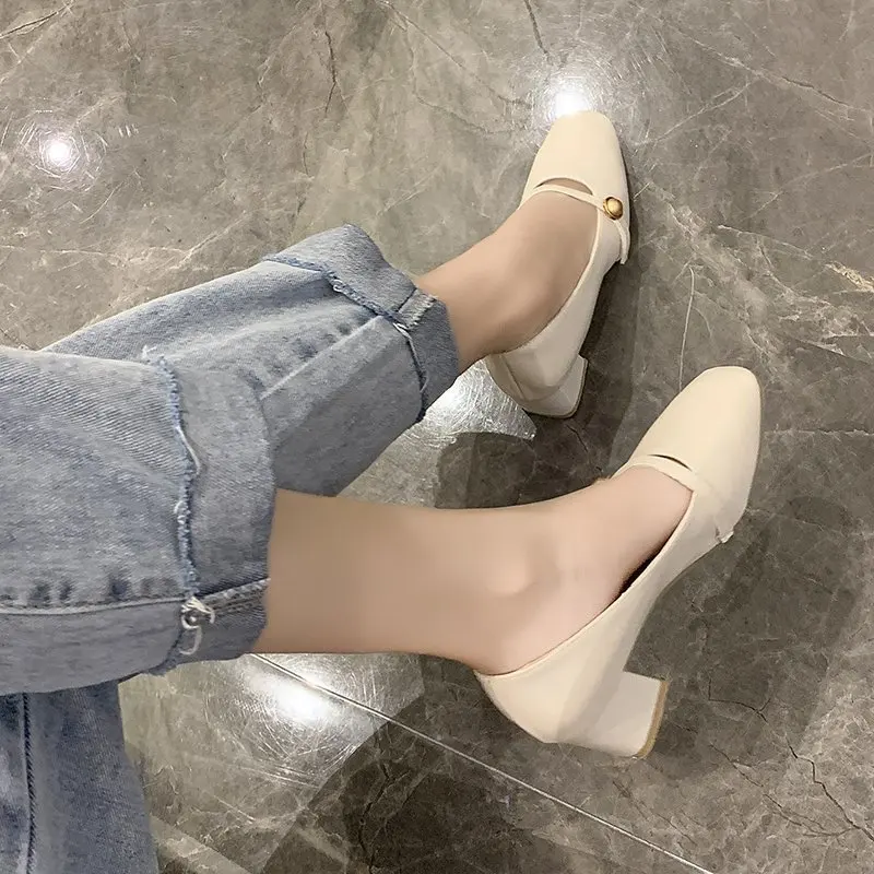 Туфли-лодочки женские с ремешком на щиколотке, квадратный носок, жемчуг, бежевые, черные, хаки, весна-лето 2021